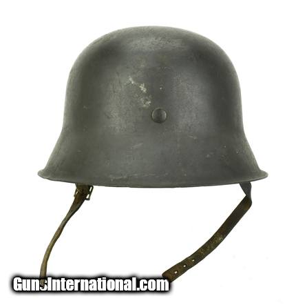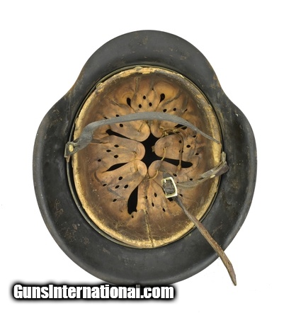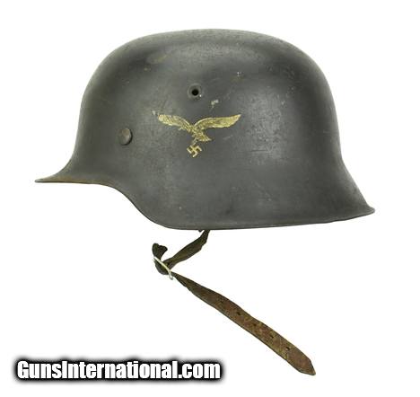 Description: M42 Single Decal Luftwaffe Helmet. CK16 batch number 2451. Liner is tatty. Chin strap is broken. Late war helmet. SOLD |
