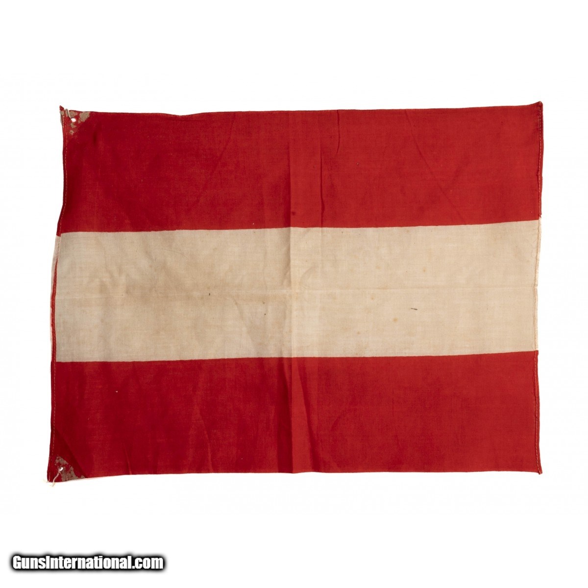 Description: "Austrian State flag circa 1918-1934, overall very good plus condition, measure 12.75""x 16.5"", slight fading is noted in the white cotton. Consignment SOLD |