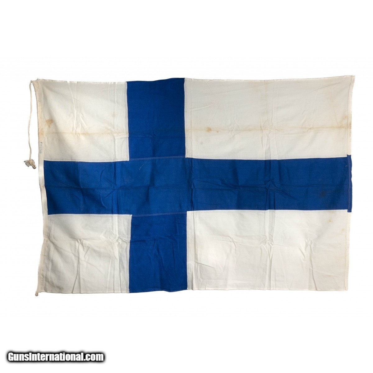 Description: "Beautiful civil flag of Finland flown from 1920-1978, overall very good condition with light wear visible. Colors are bright, flag measures 37.25""x 55.5"". consignment SOLD |