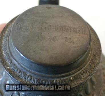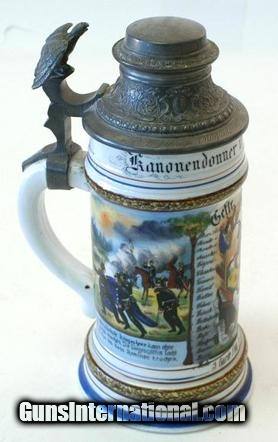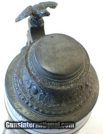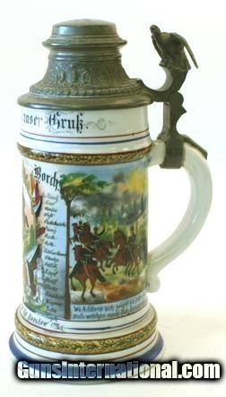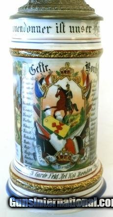Description: "Imperial German Regimental Stein with inscribed lid. The 11th Uhlan. Dated 1900/1902. Nice lithophane of the Kaiser. SOLD |