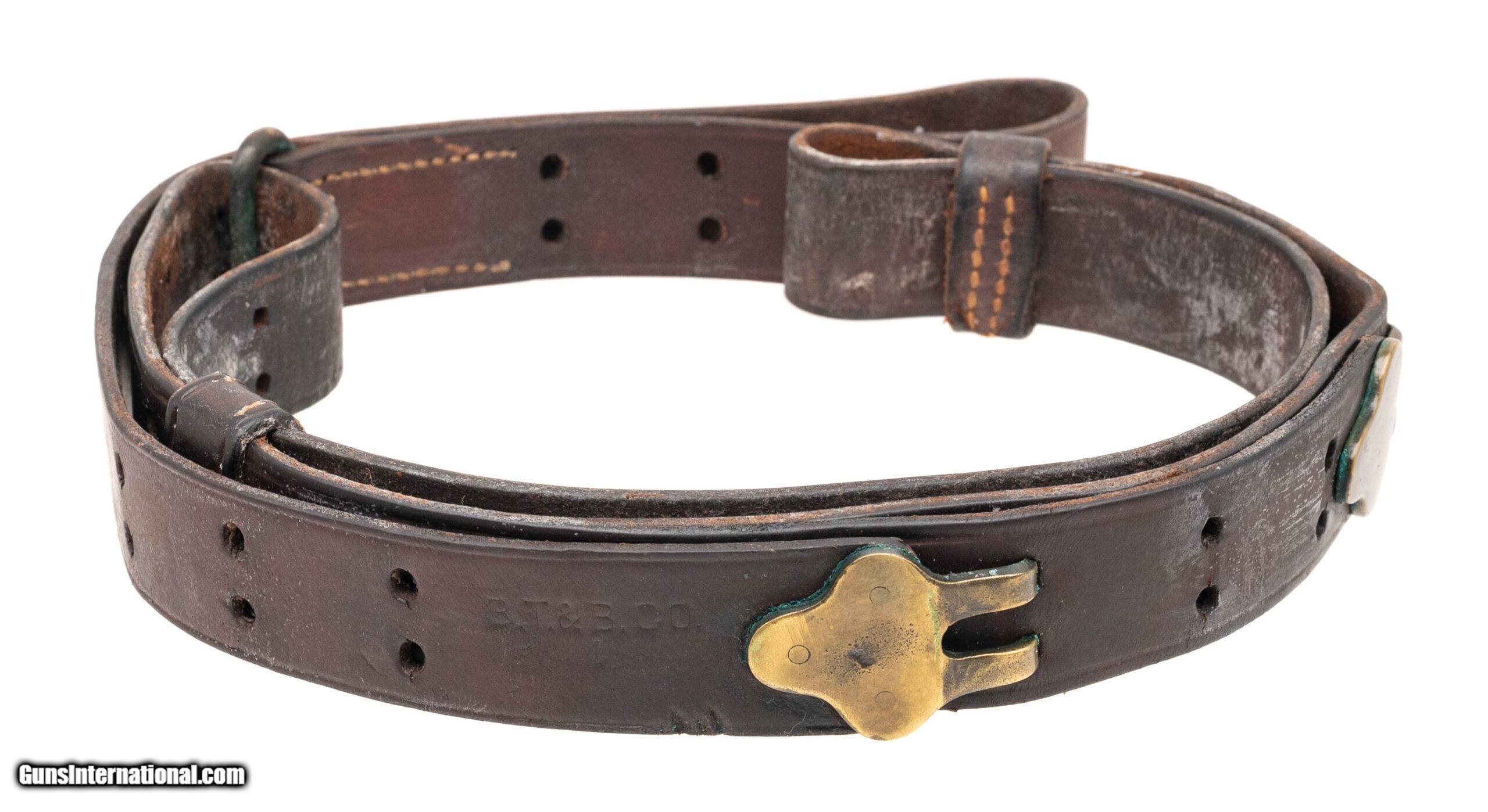 Description: "World War I USGI M1907 leather rifle sling made by the Belber Trunk & Bag Co. (B.T.& B. Co.) of Philadelphia, Pennsylvania. Price: $200.00 Contact Seller |