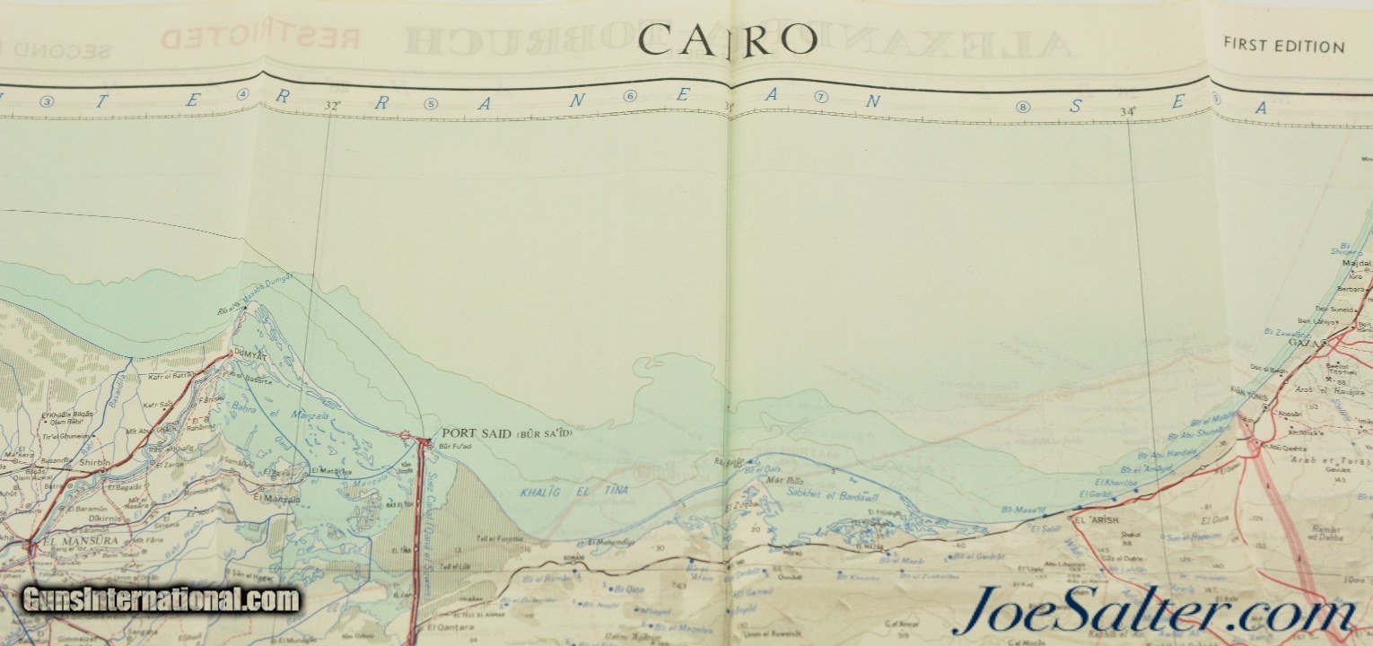British Escape Silk Map of Cairo, Alexandria & Tobruk Operation Musketeer