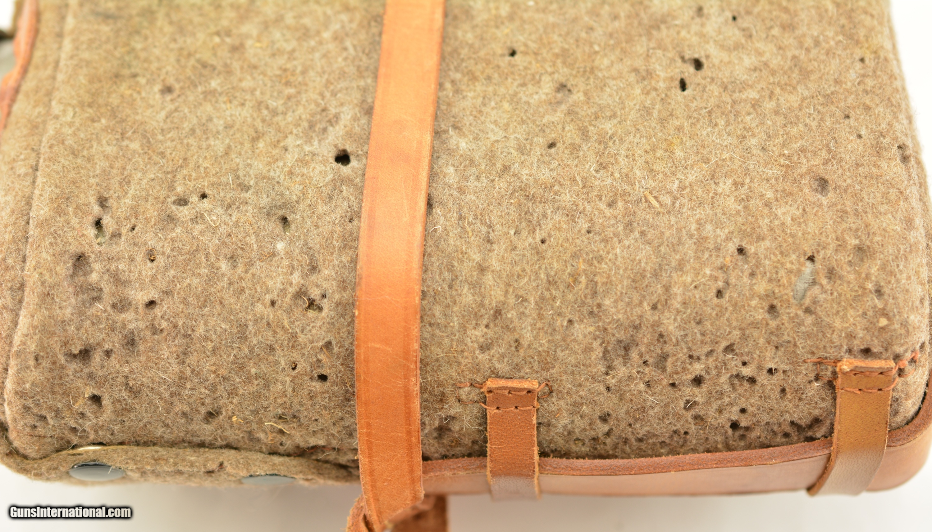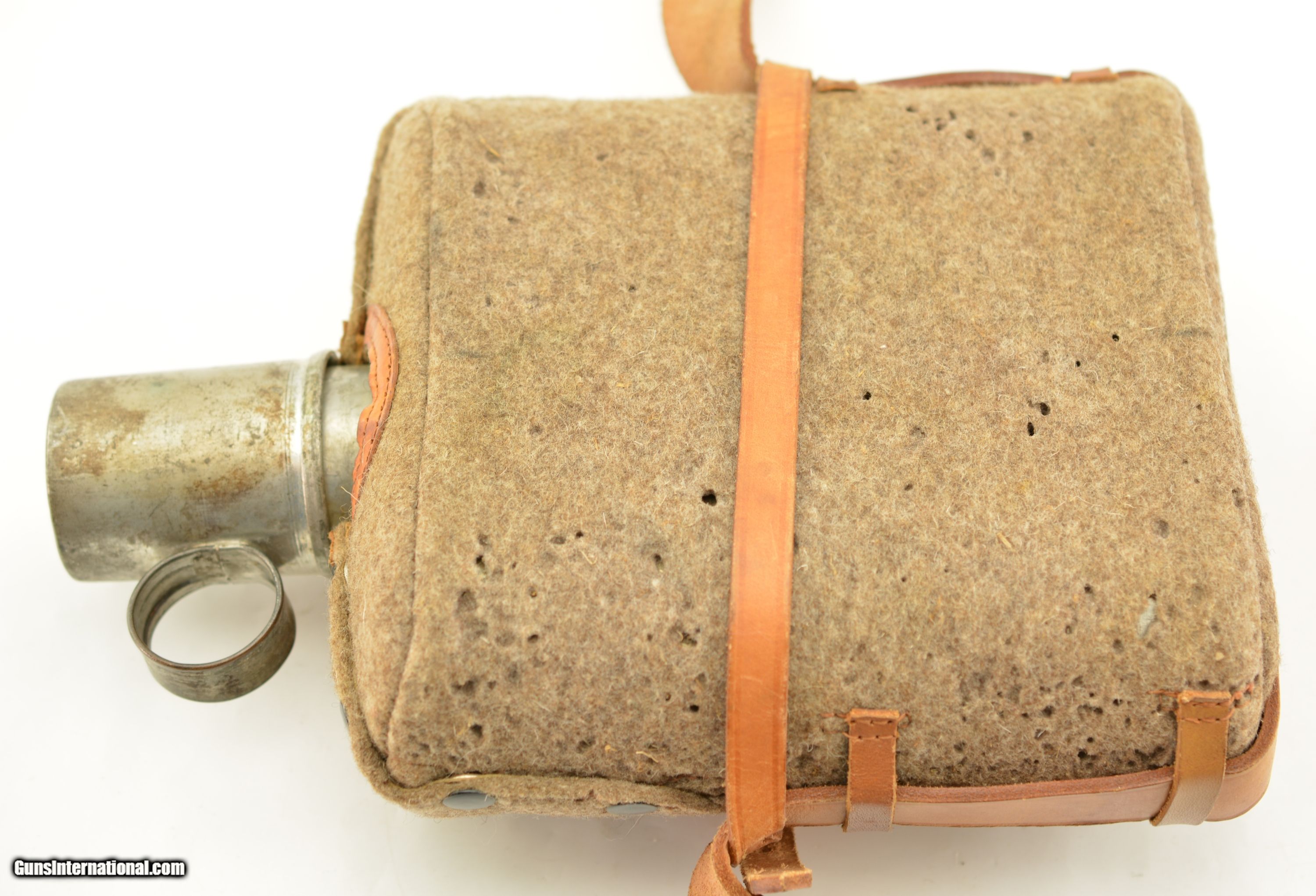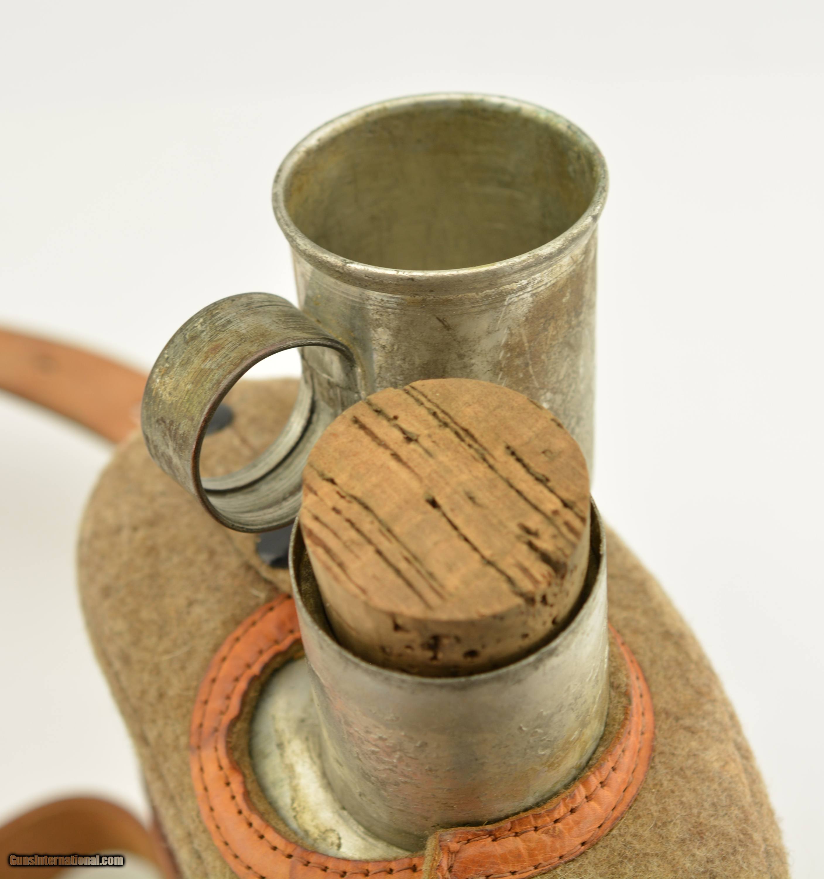Description: This is a 1956 all original Rigby & Mellor 1956 Canteen with removable cup and adjustable leather strap. The canteen is covered with a tan wool cover that shows near new on the front and some insect wholes in the back. All the parts will rate excellent with only storage marks and age soiling with the cup showing only the lightest of oxidation. Extremely well made and ready for years of work with a still functioning cork. SOLD |