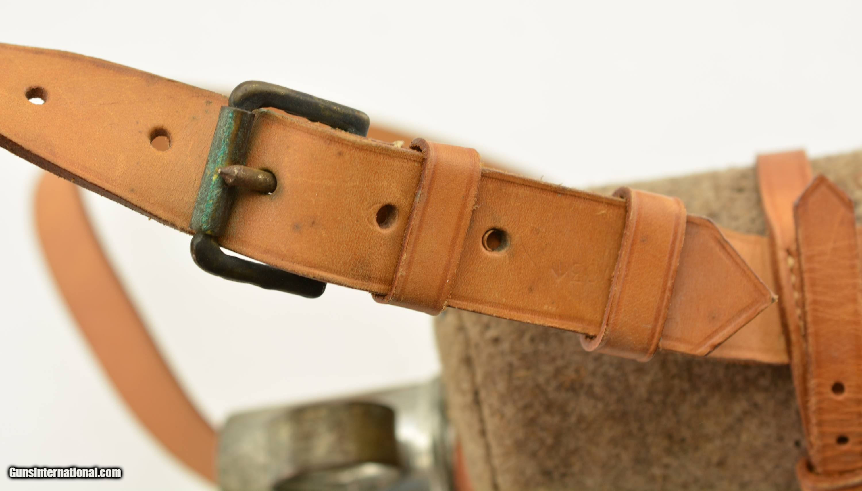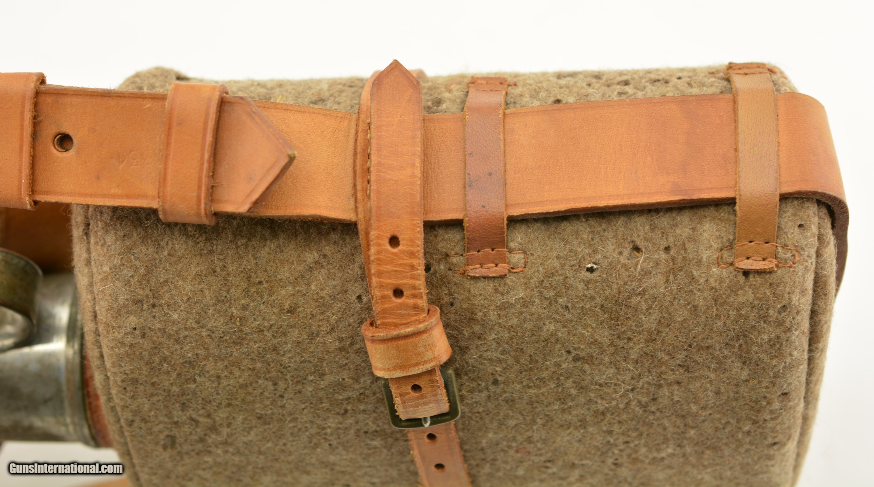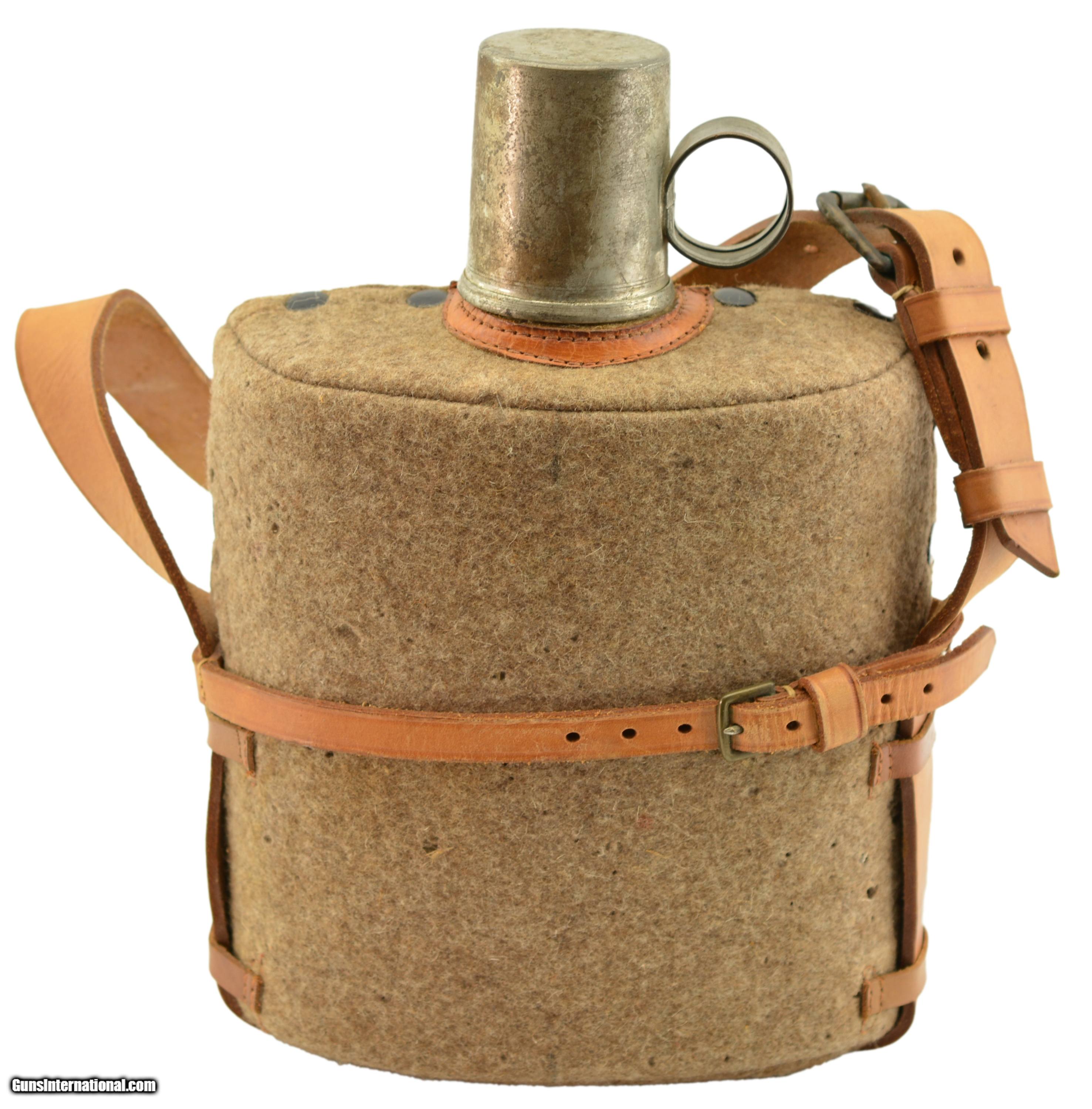 Description: This is a 1956 all original Rigby & Mellor 1956 Canteen with removable cup and adjustable leather strap. The canteen is covered with a tan wool cover that shows near new on the front and some insect wholes in the back. All the parts will rate excellent with only storage marks and age soiling with the cup showing only the lightest of oxidation. Extremely well made and ready for years of work with a still functioning cork. SOLD |