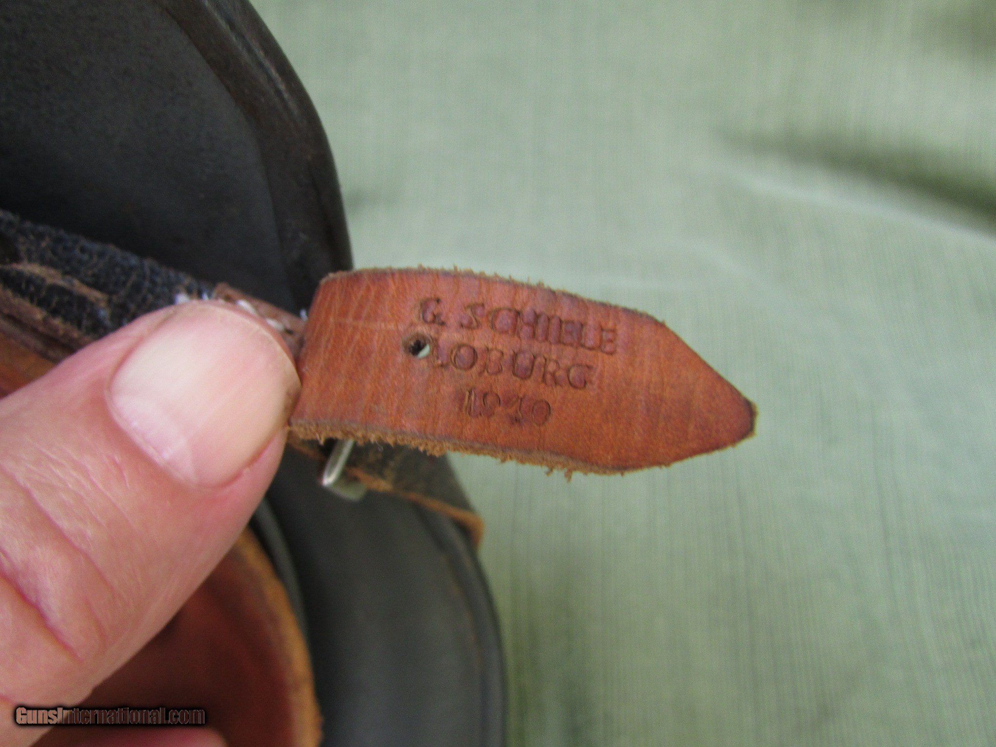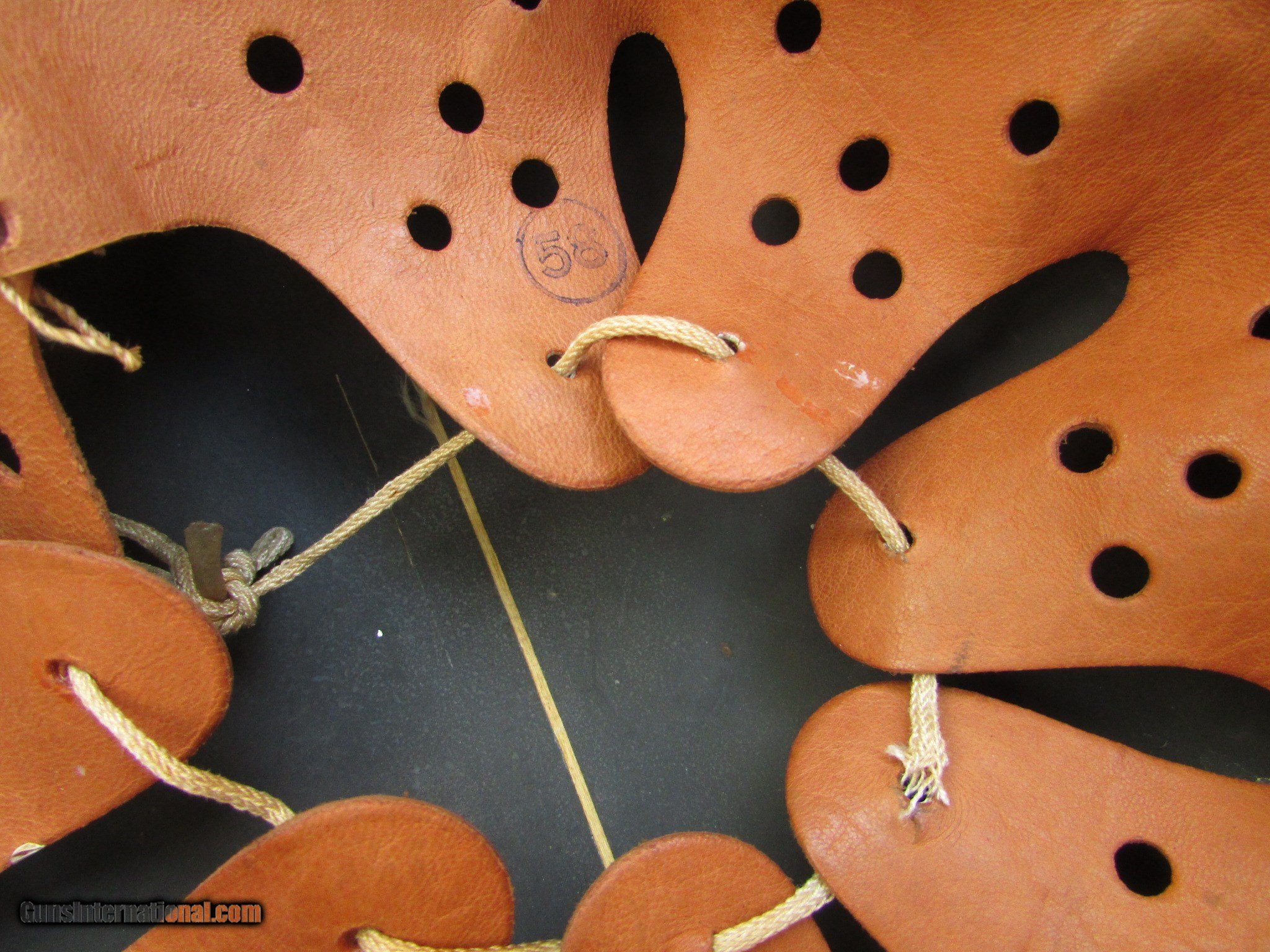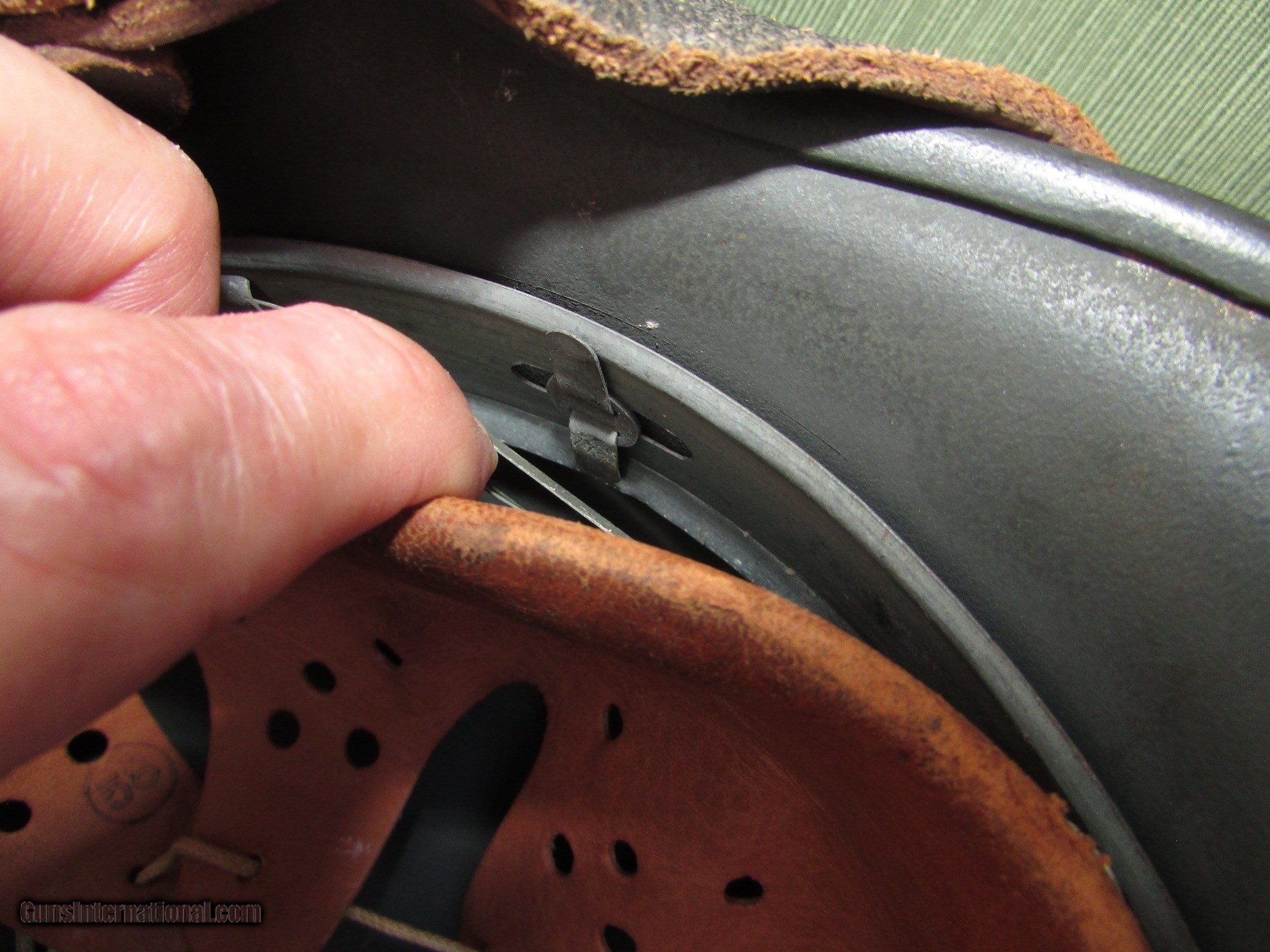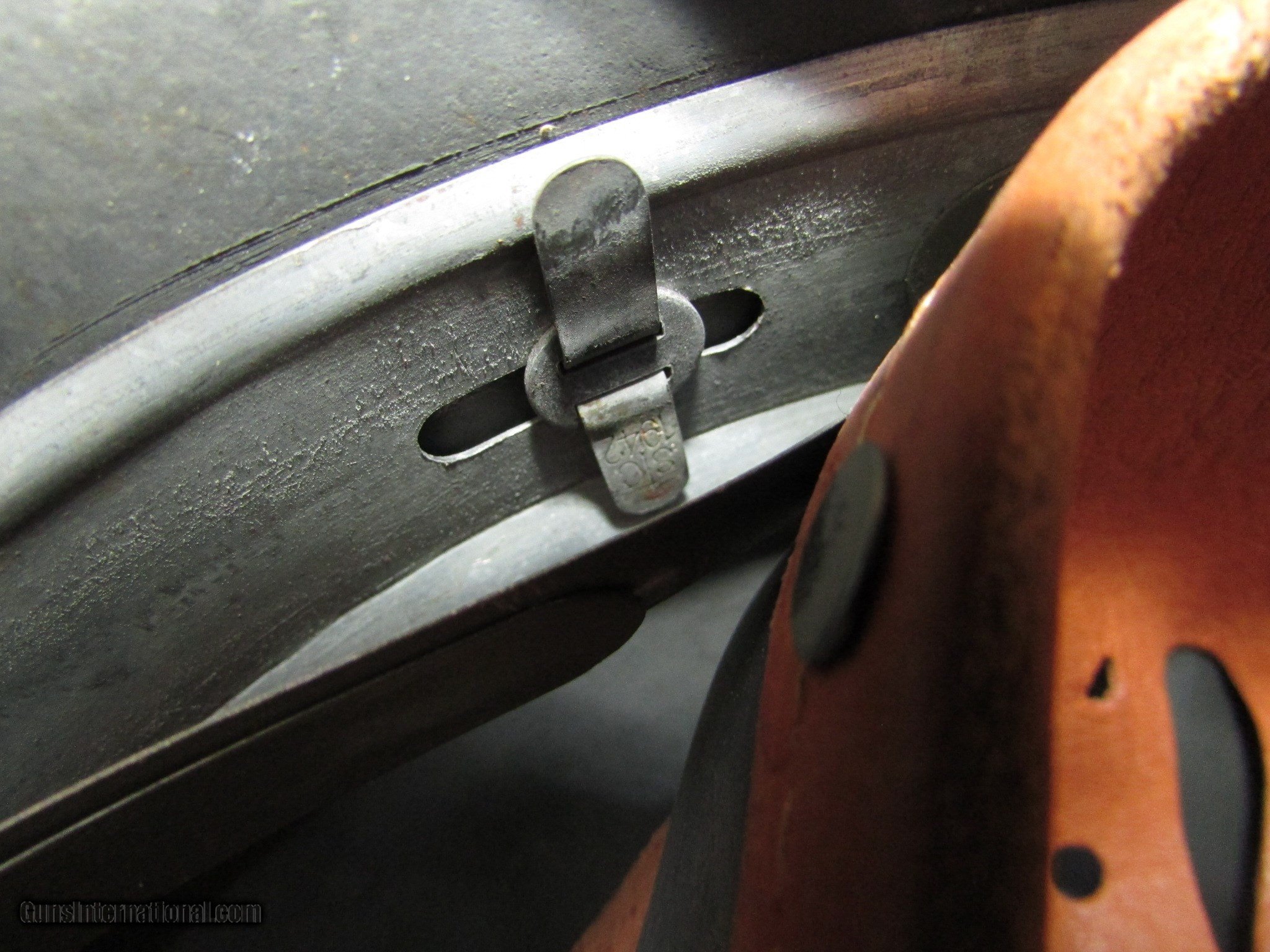 Description: Excellent German Luftwaffe Hekmet M-40 single decal. Near mint! This helmet is a desireable size 66. Appears un-issued with just storage wear. Liner and chin-strap are excellent as you see. The liner pins are tight and un-touched. Nice decal with old lacquer applied. $25 postage in the US. $650 SOLD |