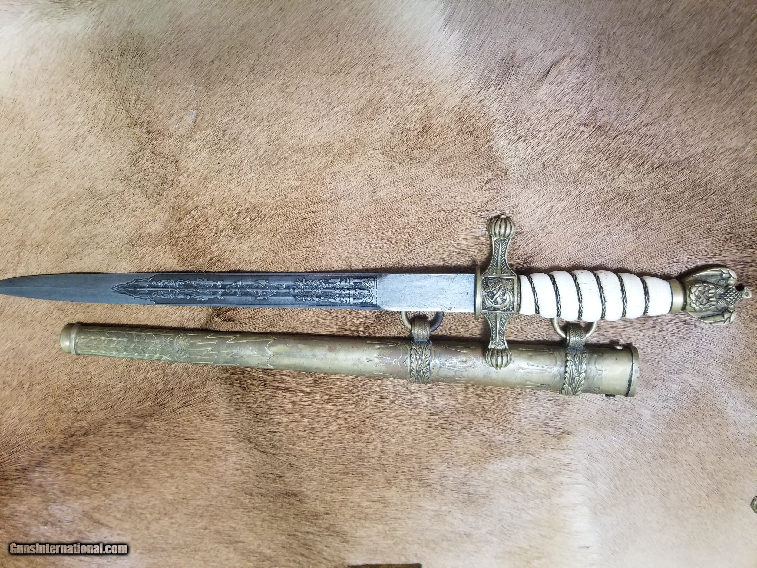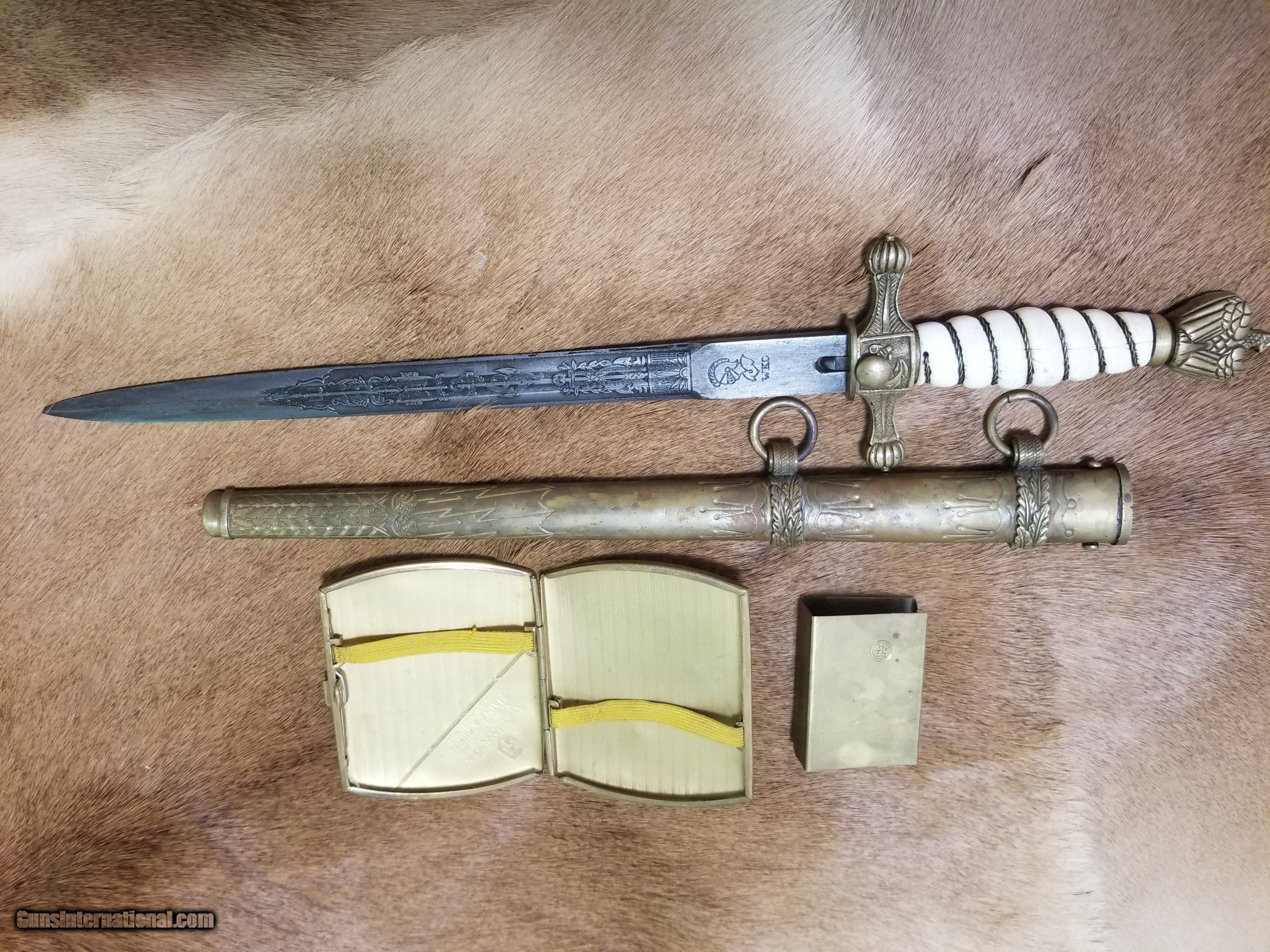 German Naval Dress Dagger w/ scabbard, Naval Cigarette case and match box, Nazi dress cap Eagle