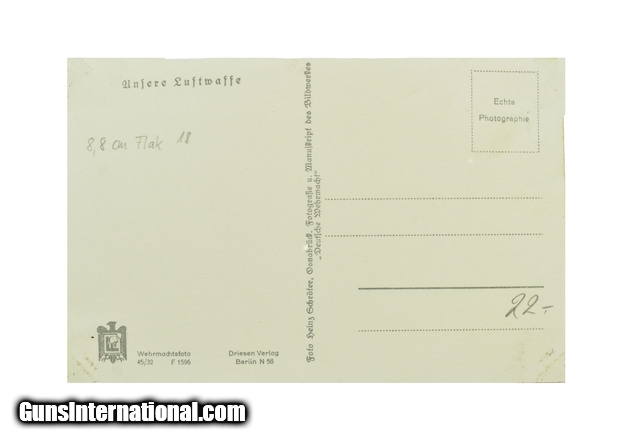 Description: German WWII Postcard. Postcard shows a Flak 88 with crew in excellent condition. SOLD |