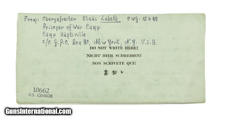 Description: German WWII POW Letter from Huntsville, Texas. POW camp letter in excellent condition. SOLD |