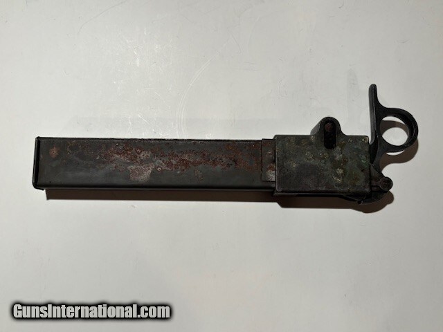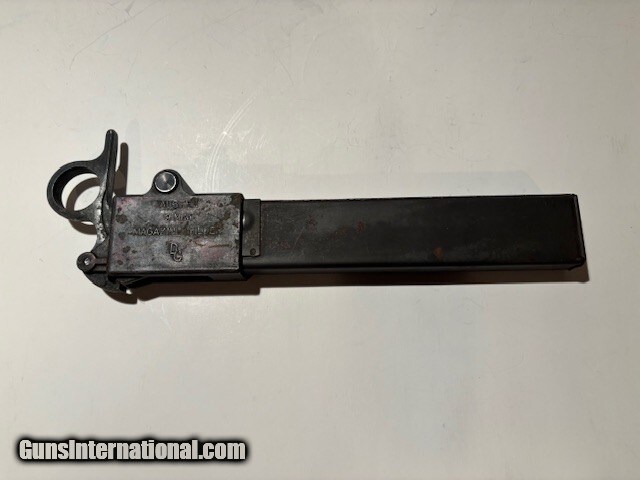 Description: The Austen (from 'Australian Sten') is a 9×19mm Australian submachine gun derived from the British Sten gun developed during the WWII. In total 19,914 Austens were produced during the war by Diecasters Ltd of Melbourne and W. T. Carmichael Ltd of Sydney. This magazine filler is in original used condition. Unrestored or modified. Slight surface rust on one side of the magazine. See photos for overall condition. Buyer pays $12.00 USPS. Handgun Caliber: 9x19mm Parabellum (9mm Luger, 9x19mm NATO) Price: $275.00 Shipping: $12.00 Buy Now Contact Seller |