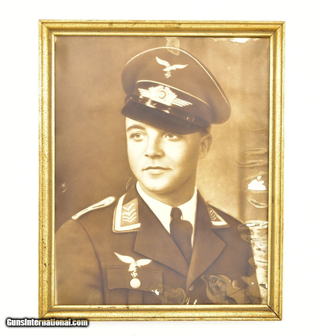 Description: Picture of Luftwaffe Service Member. Looks to be a bring back. Glass is broken, some pieces remain on right side. Shows area of damage, otherwise a very nice picture. SOLD |