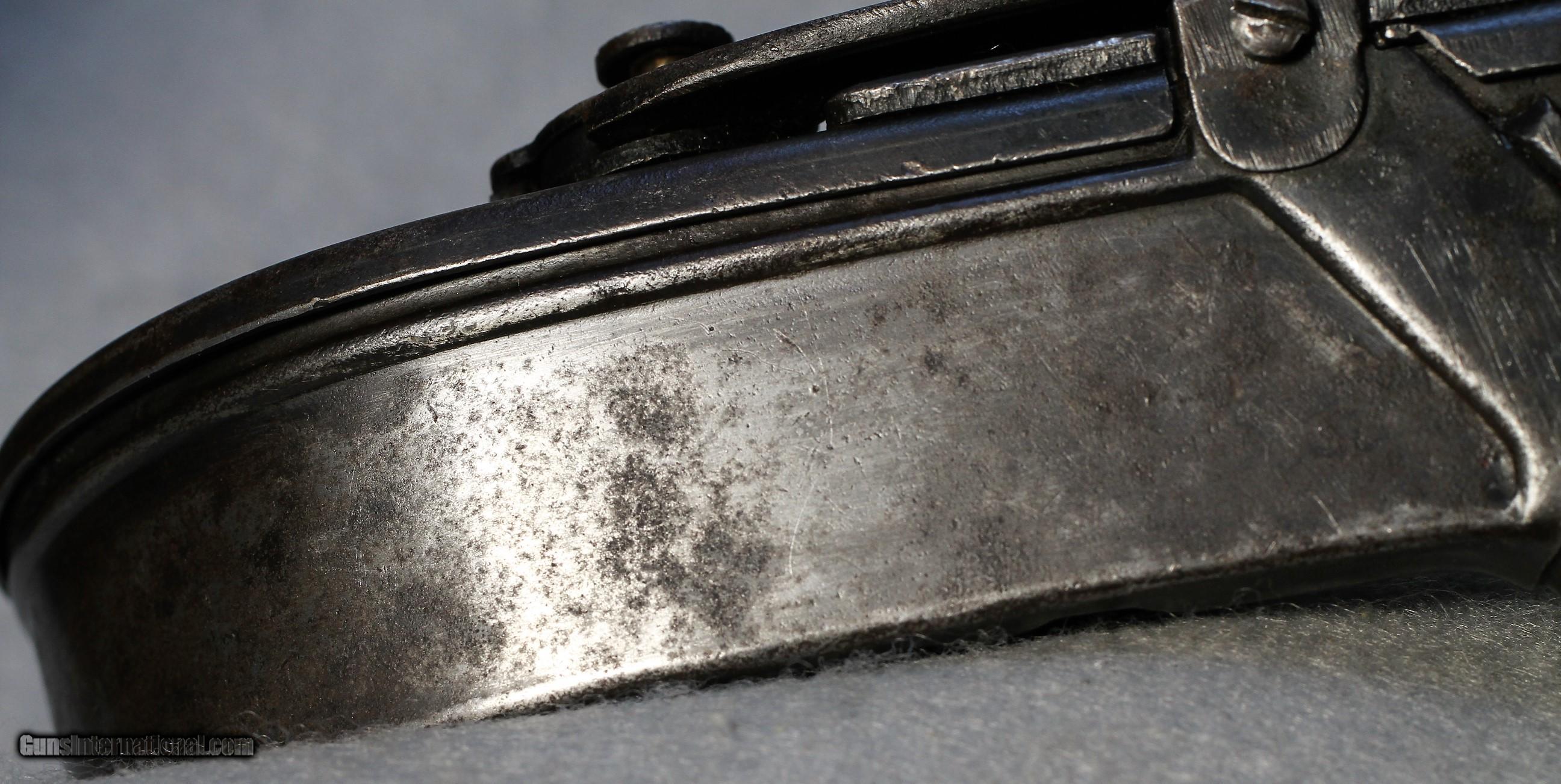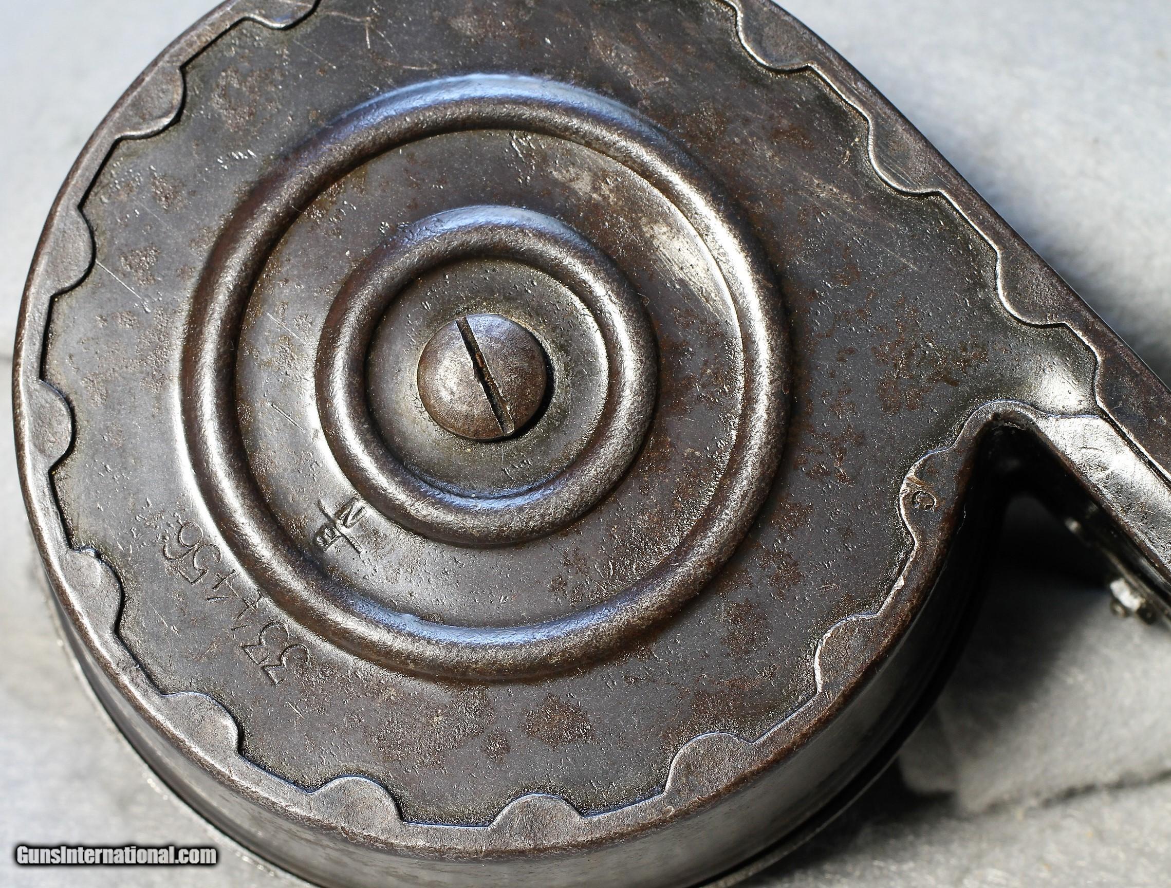 Description: For your consideration is a pre WW I trommel magazine manufactured by the Bing Corporation. It has the proper markings for the date of manufacture. The finish is somewhat compromised but is still in good shape for its age. No sales to CT, NY, NJ, CA or any other state with a Hi cap magazine restriction. Please check my photos and email any questions that you might have. SOLD |