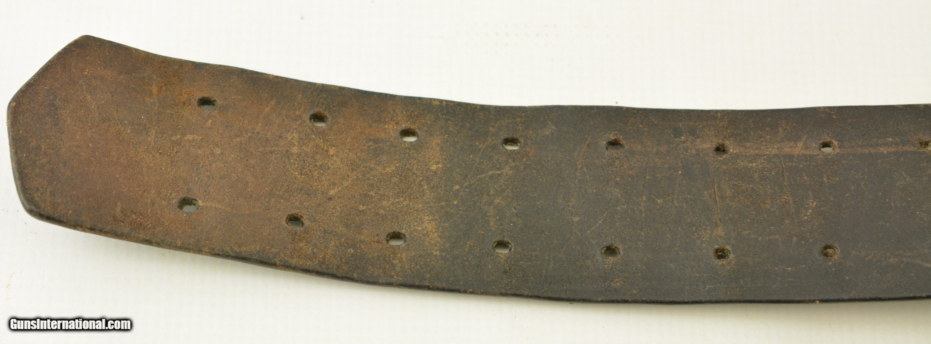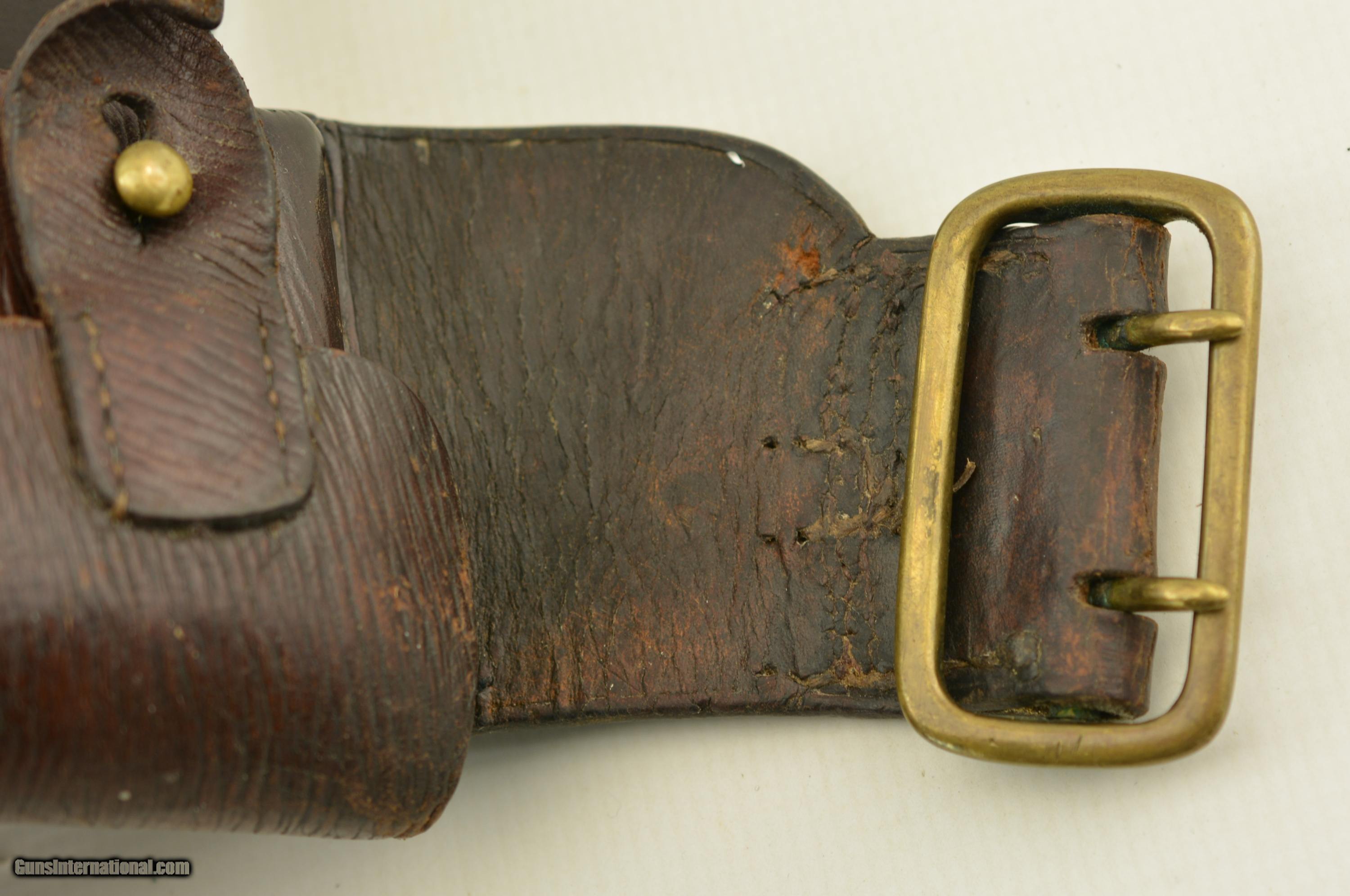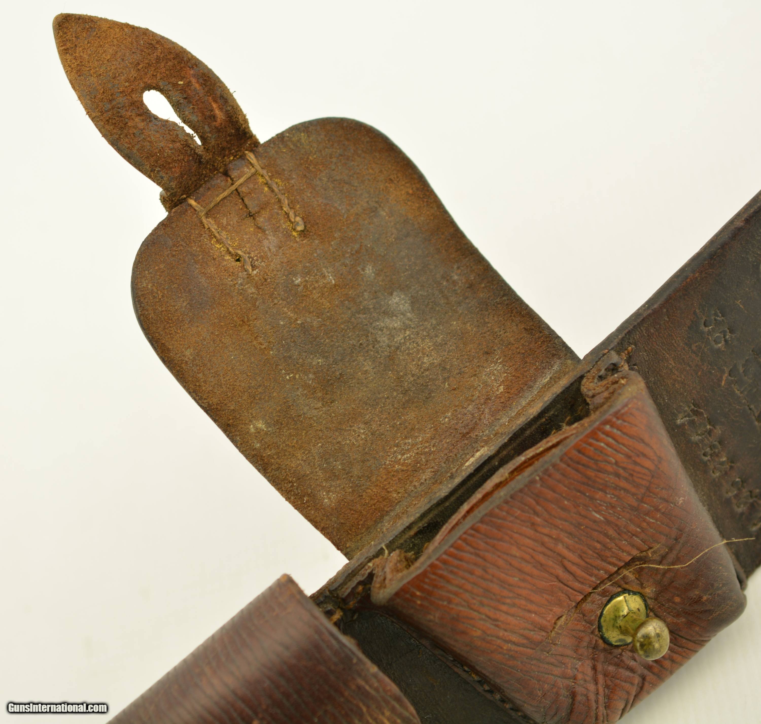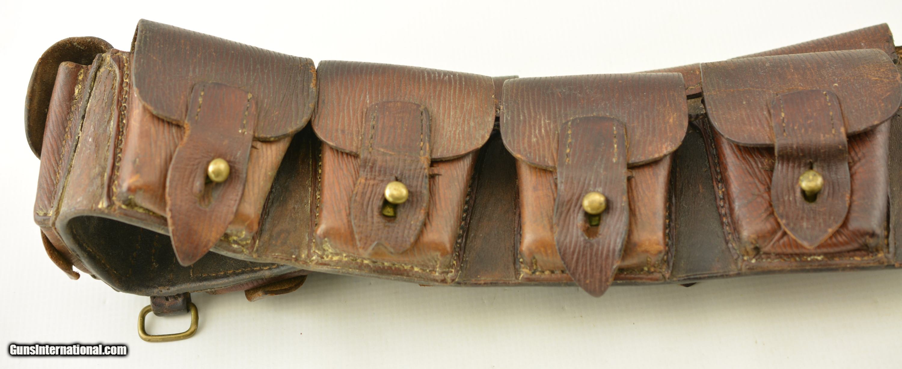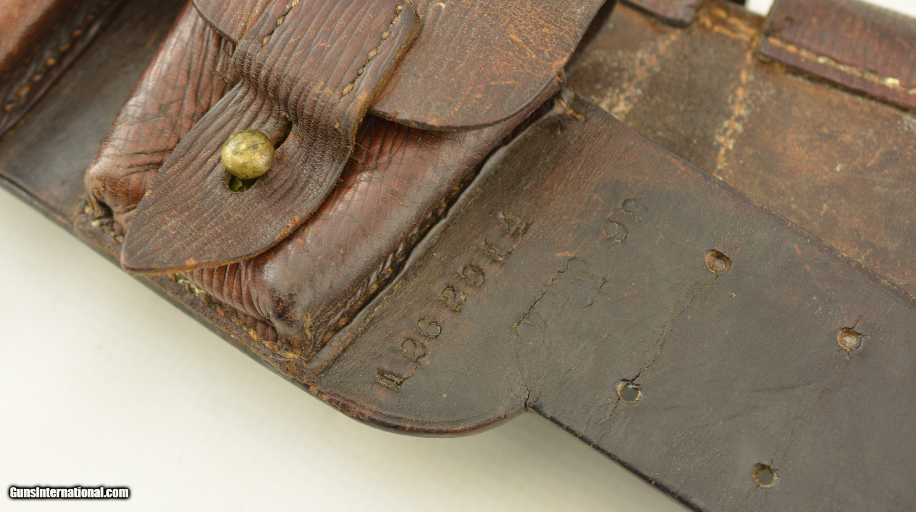 Description: This is a 1916 dated, 10 pocket belt, built by Storey & Campbell of Vancouver, BC. The brown leather is in fine shape, supple and flexible, and with only minor scuffs and crazing, and is unit marked at the base of the tag-end: “36 CFA". The inner side of the belt is hand-carved with a soldier’s name as well: “D McD / 36"; and a unit registration number is stamped on the tag-end near the unit marking: “1262314"; with large “C (double arrow)" mark along the edge of the tab. The brass fittings are intact and have a mild ochre tarnish throughout. The 36th Canadian Field Artillery was based in Sydney, NS at the northern end of Cape Breton Island, and the registration number is listed as issued to a Percy Hilard Smith Thompson, who was attached to the Canadian 4th Division Ammunition Sub-Park. This is a splendid piece of Canadian military equipment, and would make a great addition to a WW1 Canadian collection. SOLD Manufacturer: Canadian Model: Cartridge Belt |