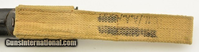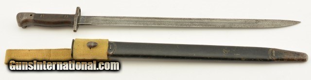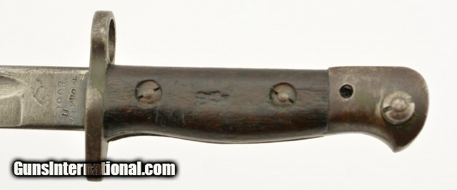 Description: This is a unaltered British Pattern 1907 second model made by Wilkinson in 11/18 and remarked for duty in 1927. It is also marked "5.LEIC./314 for 5th Leicestershire. This bayonet most likely saw use in both World Wars. The blade is in very good to excellent unsharpened condition with light oxidation and nearly unmarred edge and correct tip. The crossguard shows signs of normal wear and light oxidation. The handle has a deep rich patina with proof marks on both sides. Lastly ending in a functional rifle lug pommel with unit markings and the correct oil cleaning hole. Comes with a correct scabbard in very good condition with canvas frog. 21 3/4 over-all. Price: $175.00 Contact Seller |