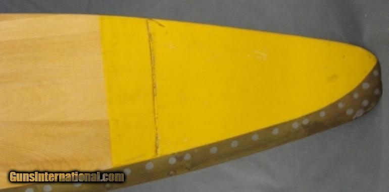 Description: This propeller is from a Avro Anson and is dated May 1943. The Anson was the most widely used RCAF aircraft with some 4413 aircraft in use from 1941 to 1945. These aircraft were used as transports, anti-submarine patrol, and as the mainstay of training command. Built in six Canadian factories during WWII. this great prop is in new condition 7 feet long with a 9" hub. Built by S7S Aircraft Ltd. of Winnipeg. The piece retains its original stickers, paint, leading edge unpolished brass. The serial # is G2304 Model Cheetah Mk 1 X. A wonderful display item for the WWII, air force or aircraft collector. SOLD Manufacturer: WWII Anson Cheetah Model: Propeller Serial Number: G2304 |