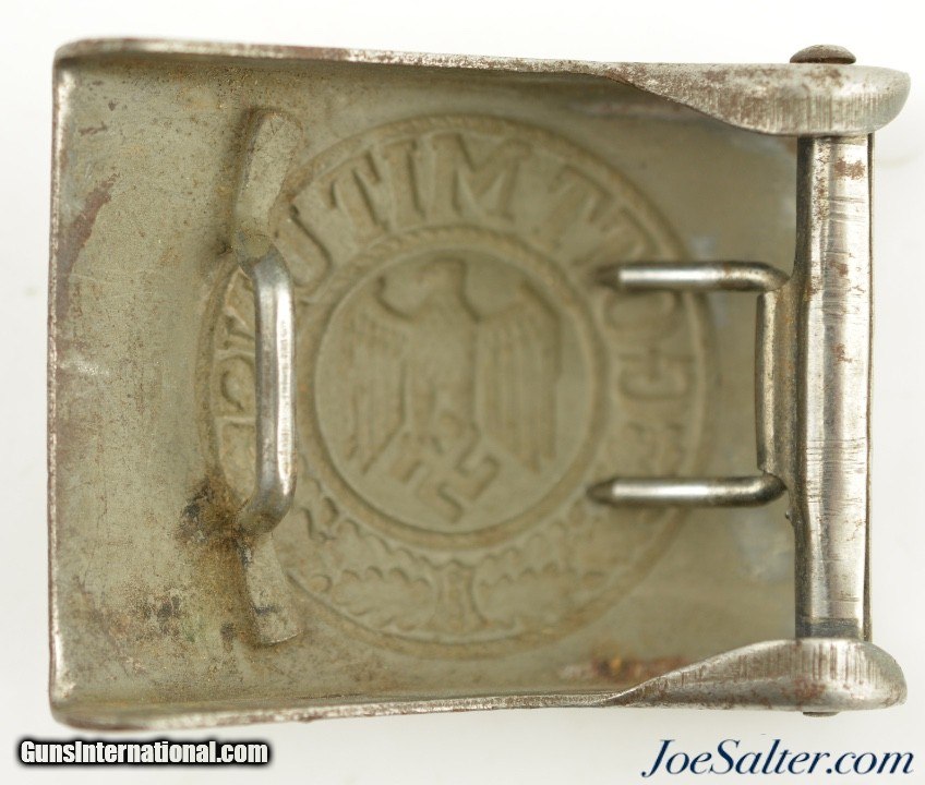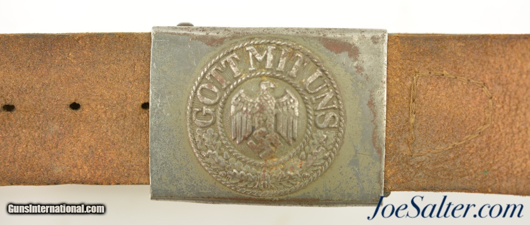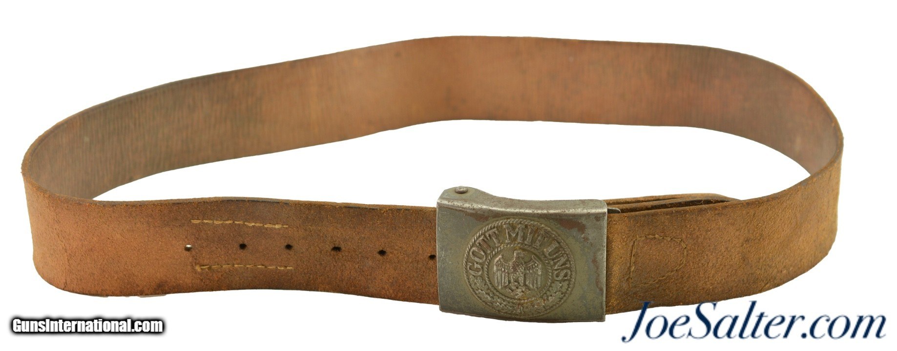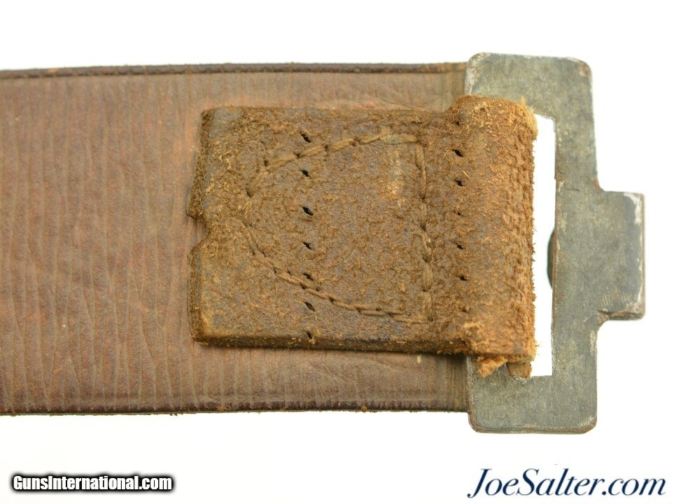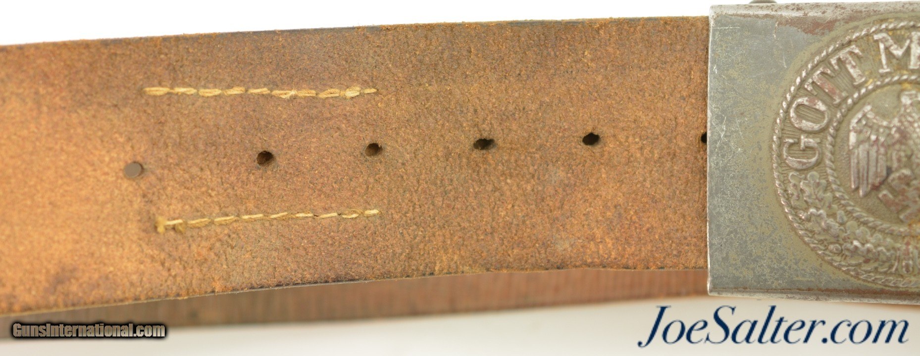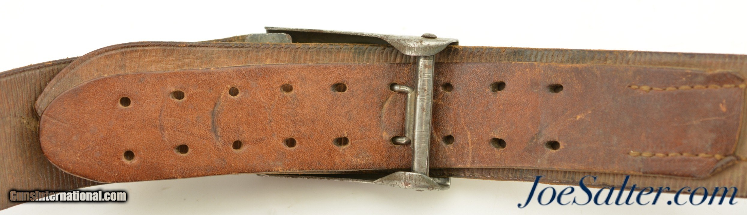 Description: Original Second World War German Heer belt and buckle set. The steel buckle is a standard late war production with factory field grey paint and no makers mark I can find, shows wear with light oxidation. The Wehrmacht leather combat belt, with no size marking or makers marks, belt is about 35" long. The set is in field worn condition, without any repairs.; Price: $219.00 Contact Seller |