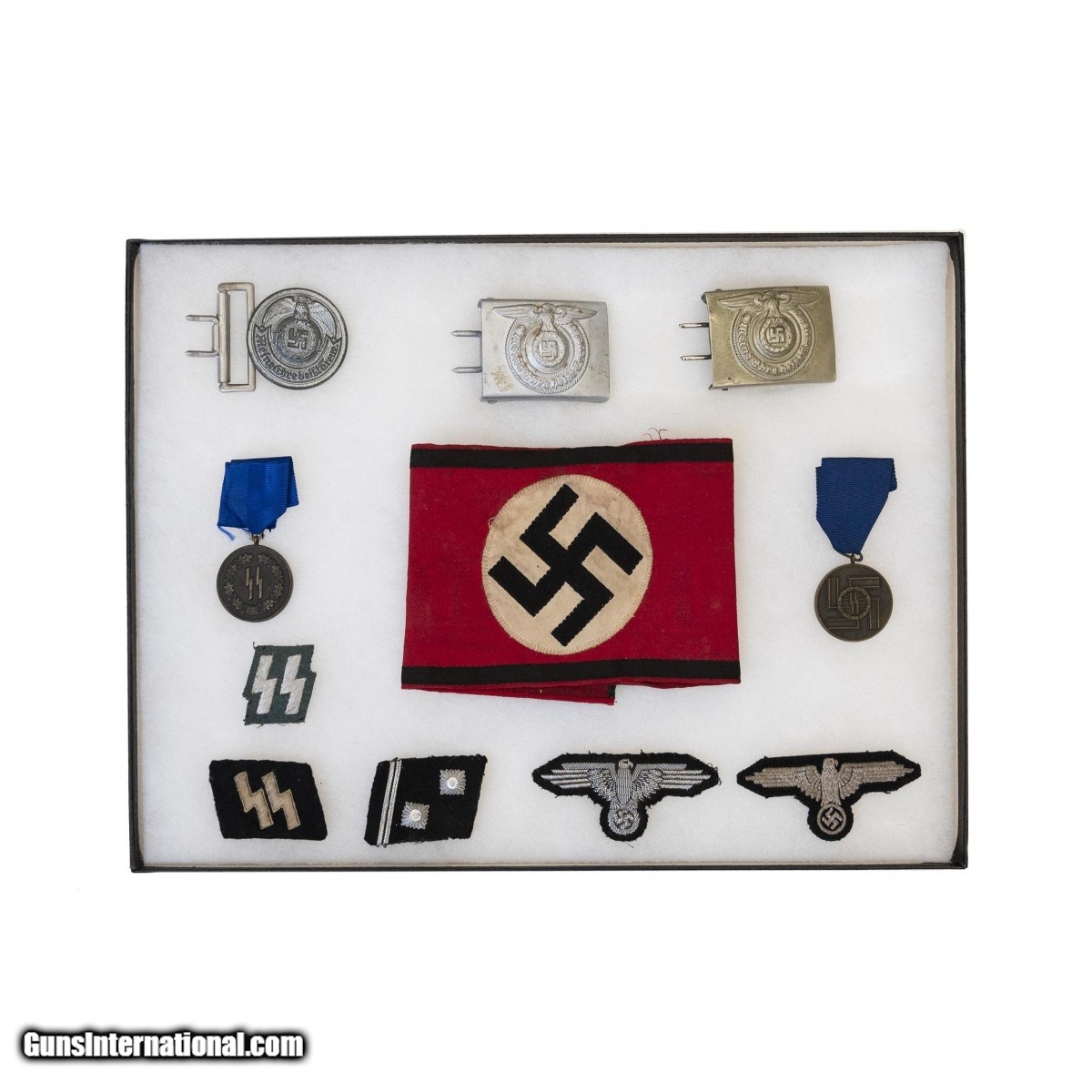 Description: " Lot of German SS belt buckles, arm band sleeve/breast eagles and collar tabs. (Sold as a lot.) SOLD |