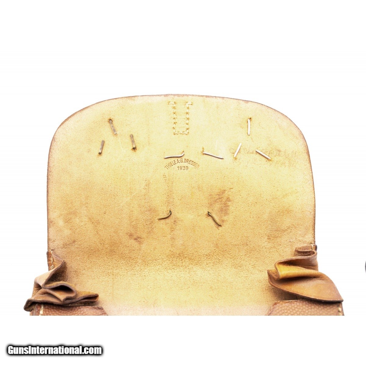 Description: " Dated 1939. Leather is marked ""Thiele A.-G. Dresden 1939"". Flap has some tinnies added, most likely by a GI. Very good overall condition. SOLD |