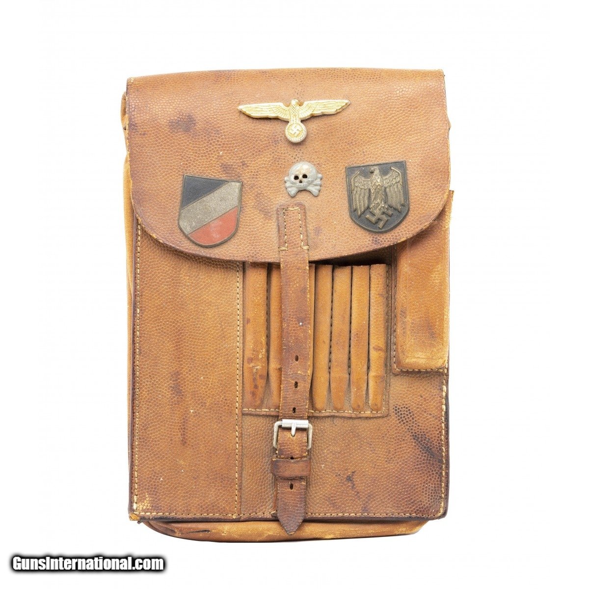 Dated 1939. Leather is marked ""Thiele A.-G. Dresden 1939"". Flap has some tinnies added, most likely by a GI. Very good overall condition.