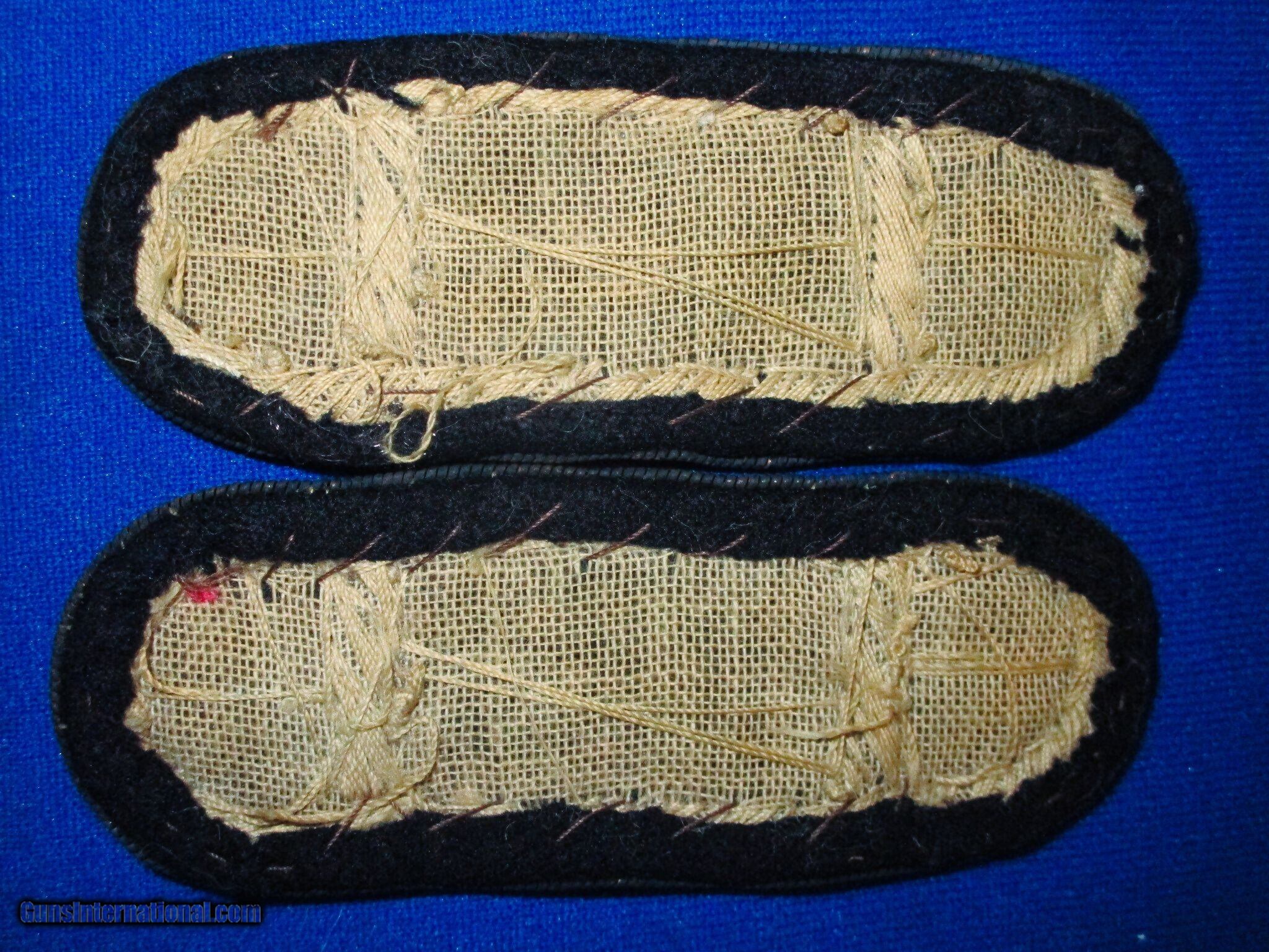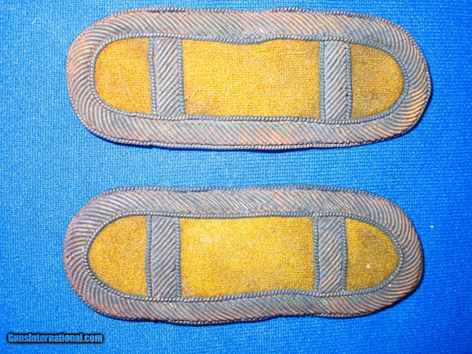 Description: A Very Early & Rare Original Pair Of U.S. Mexican War Lieutenant's Cavalry Straps Yellow In Fine Untouched Condition. All original and complete. The rare straps are are in fine condition on both the front and back as shown. They have yellow backgrounds and bullion on the borders & in the center. The straps measure 3 1/2 by 1 1/4 inches. The backs of the straps are original and fine throughout. This Is A Very Scarce & Fine Example Of A U.S. Mexican War Yellow Background Lieutenant's Cavalry Straps In Very nice Condition That Would Be An Excellent Addition To Any Fine Collection! Price: $725.00 Contact Seller |
