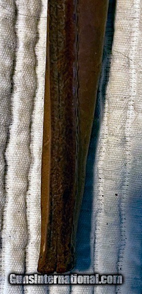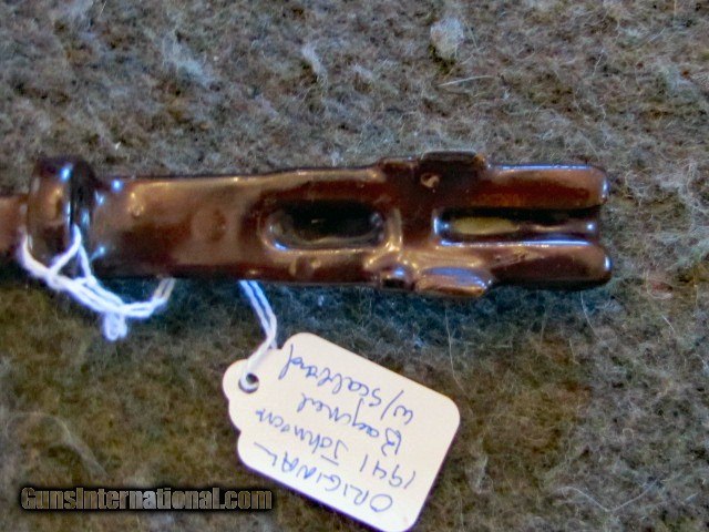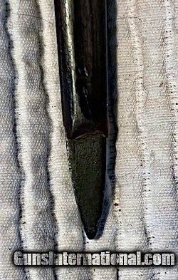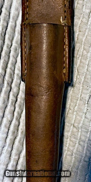 Description: For sale is a Model of 1941 Johnson bayonet and scabbard in outstanding condition. The bayonet, except for a small part at the tip, is still in the protective coating and is mint. The scabbard is in excellent to mint condition. Nothing more to add – view the photos to judge for yourself. Johnson bayonets are scarcer than the rifles. A bayonet and scabbard in this condition are extremely rare; I have never seen another set offered in this condition. Contact me for additional photos and with questions. Shipping by Priority Mail is included in the price. Payment is by certified check or money order. I will accept personal checks; the item will be held until the check clears. SOLD |