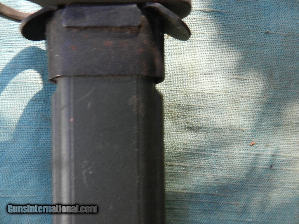 Description: A vintage U.S. M6 Imperial bayonet with green scabbard, and the blade was not over sharpened after being issued.Blade is clean with original finish When buying a gun always have it examined by a competent gunsmith before shooting. To buy a gun from me you must get a direct email for me, with details, and shipping cost. We don’t have a web site .I prefer money orders or a check. Item ships when funds come in. I try to keep guns affordable, which means I make less money than most dealers. You won’t get altitude sickness, or nose bleed, with my prices! I consistently have the best selection of older guns If you attempt to buy, you must still contact us for details . Best to email to buy. Sometimes a local person can stop buy and purchase before the gun is removed. Sometimes not home to get calls. Some guns are required shipment to a gun dealer near you for a transfer to you when it arrives. Otherwise many older or black powder guns ship to your door. With the widest selection of older guns at great prices, We don’t have a store, and sell on the internet only. I’m easy to get along with. Thank You Price: $95.00 Contact Seller |