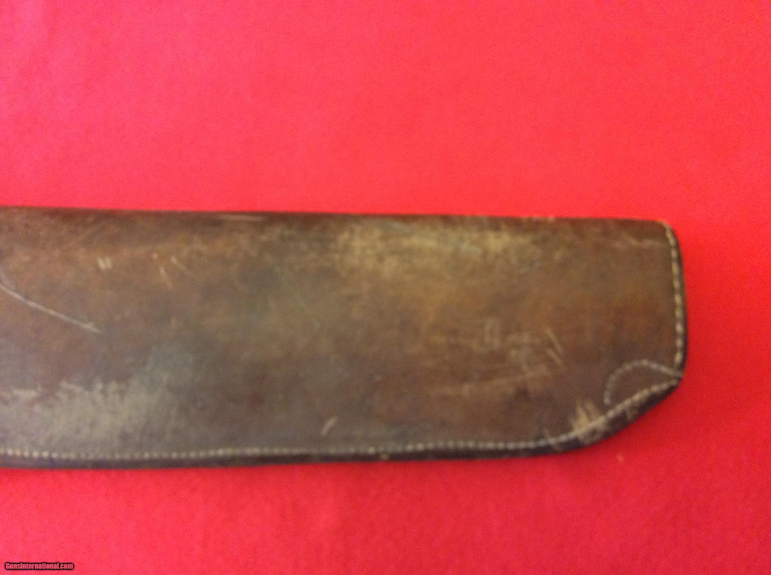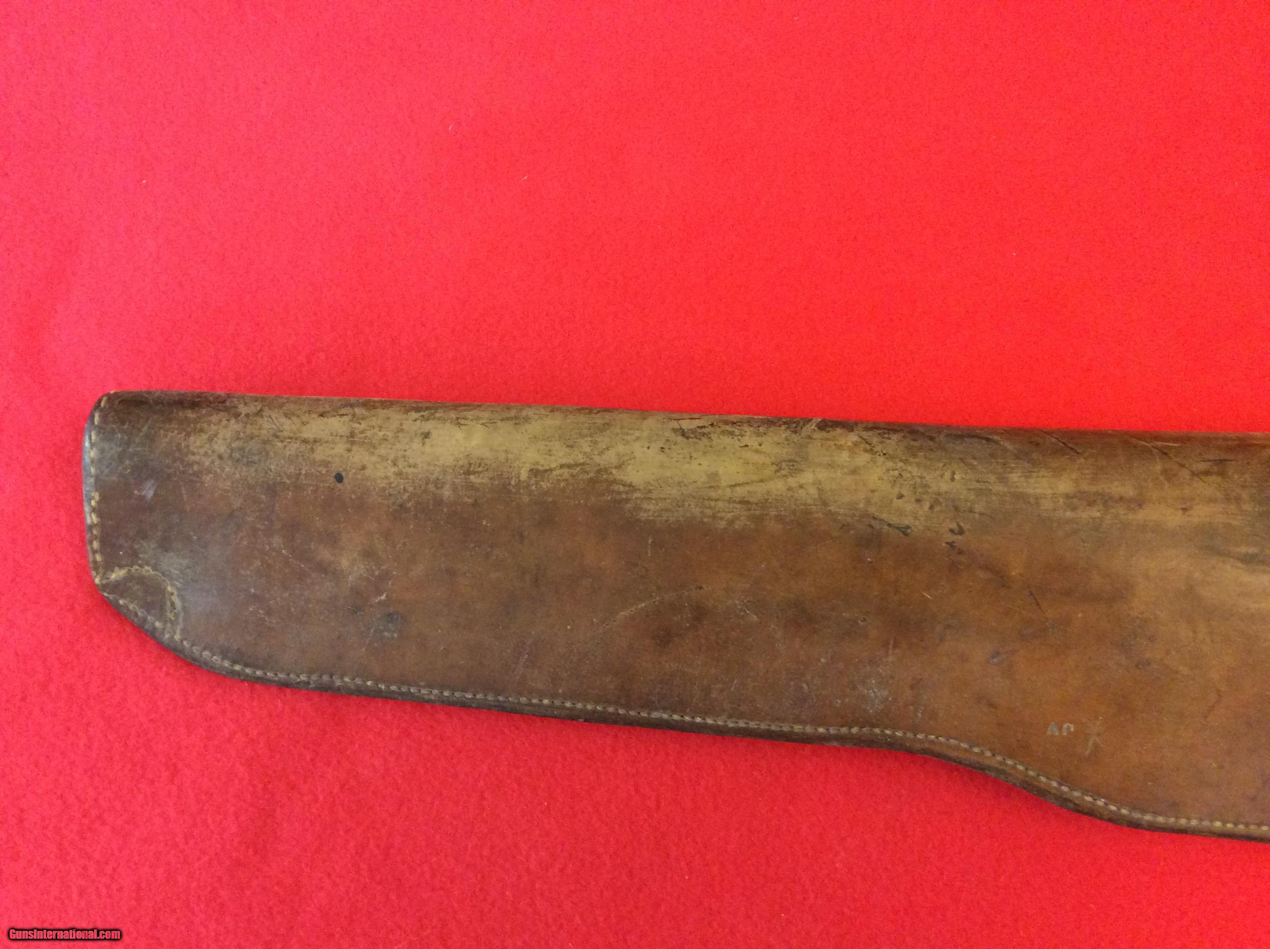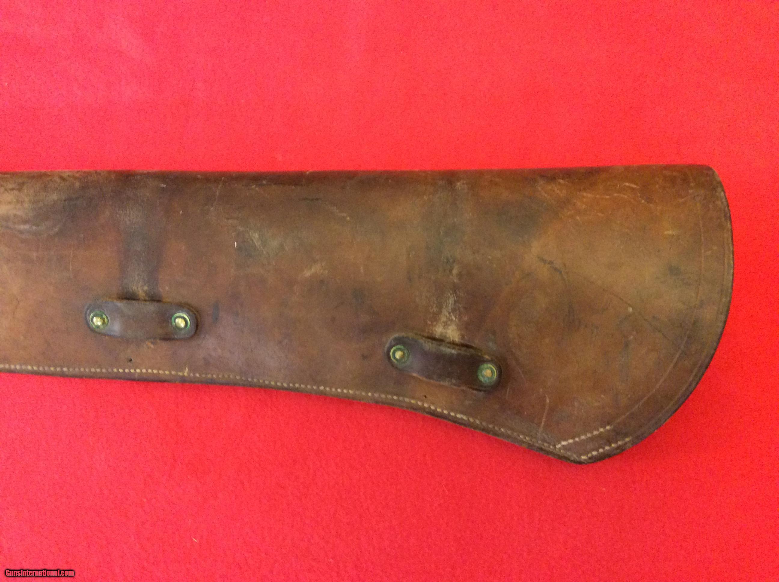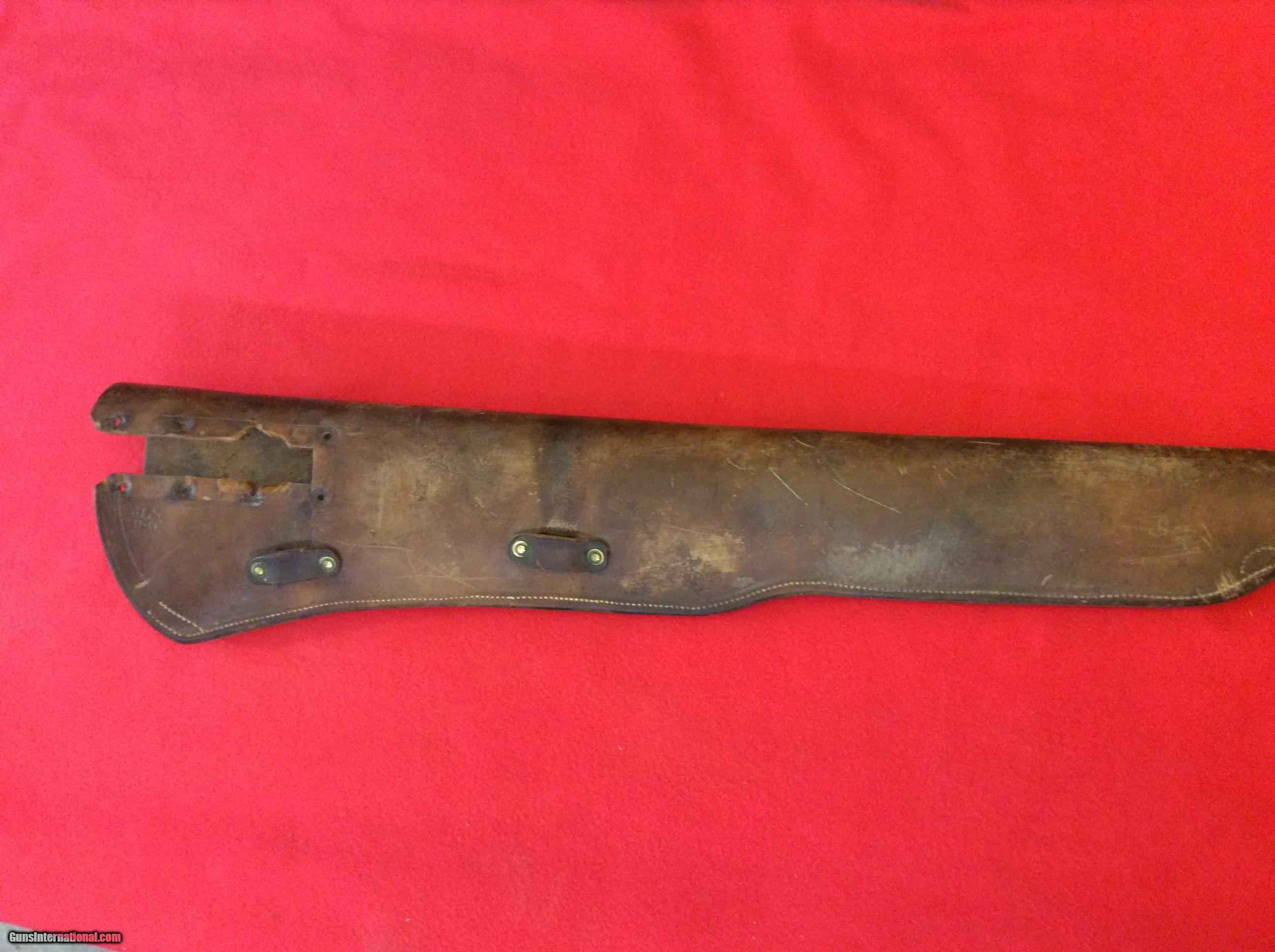 Description: For your viewing is a military rifle scabbard. The metal piece that protects the bolt latch has been removed so it could be used for a bolt action rifle on a horse set up. Good sound leather, just needs the metal piece to make it authentic. Or just use it for a bolt rifle. Call for for more info.etc. Thanks for looking SOLD |