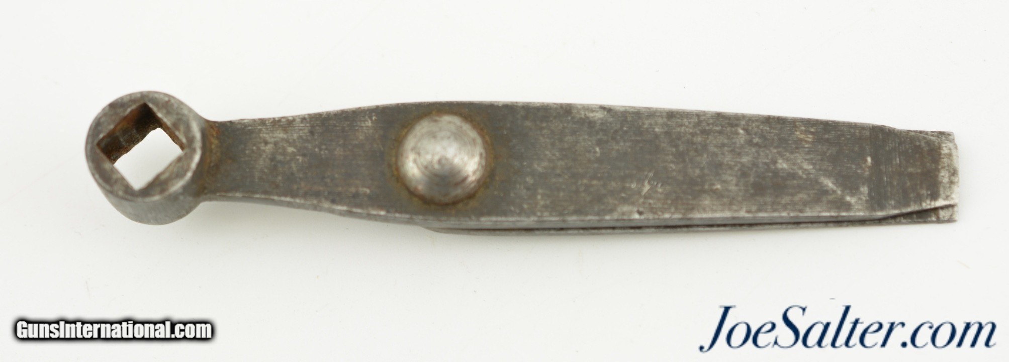 Description: This is an Original U.S. M1841 Rifle/ M1842 Musket Combination Tool with a flat ground wrench head and no markings. This tool was made by several companies over the years. This example is 3 1/2" long with light oxidation, most of the finish and straight slot blades.; Price: $89.00 Contact Seller |