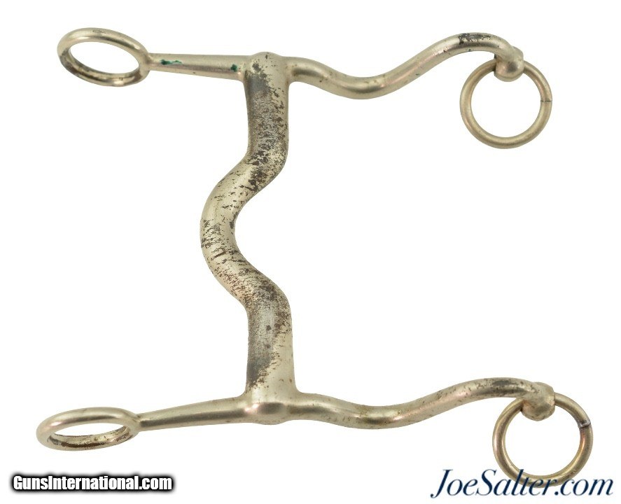 Description: This is an original era manufacture 1874 pattern cavalry bit with a #2 mid-port, in very good condition. The bit is in very good condition with speckled finish, light oxidation and life left in it. Approx 7" long and 5 1/2" wide. This example is marked "US 2 1907 R.I.A." ; Price: $85.00 Contact Seller |