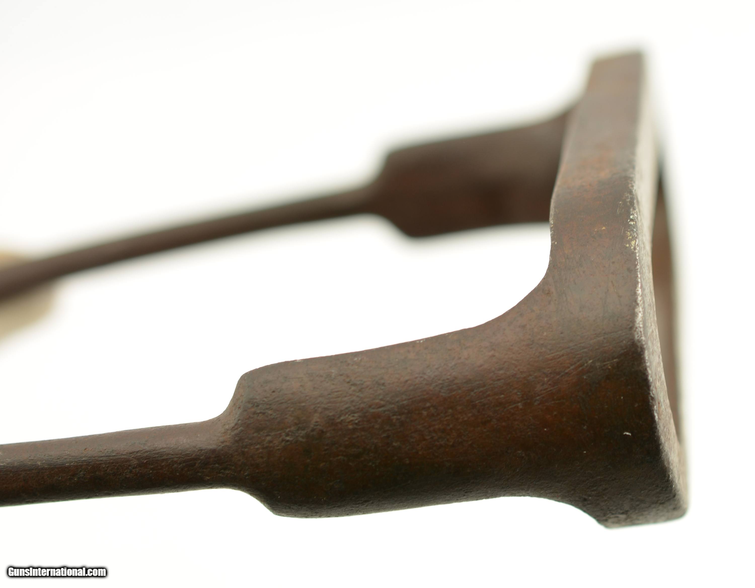 Description: Antique M1912 US Army cavalry and field artillery stirrups for McClellan saddles, marked US A.G.S. & Bros, this was M1912 a large knife-edge stirrup that replaced all other metal stirrups by 1914 and became the standard till the M1938, there was a M1916 that was a direct copy of the French officers model but they were made in very limited numbers. This pair is in very good original condition with light surface corrosion. The original makers stamping on bottom is still visible but light in some spots. SOLD Manufacturer: US Military Model: Stirrups |