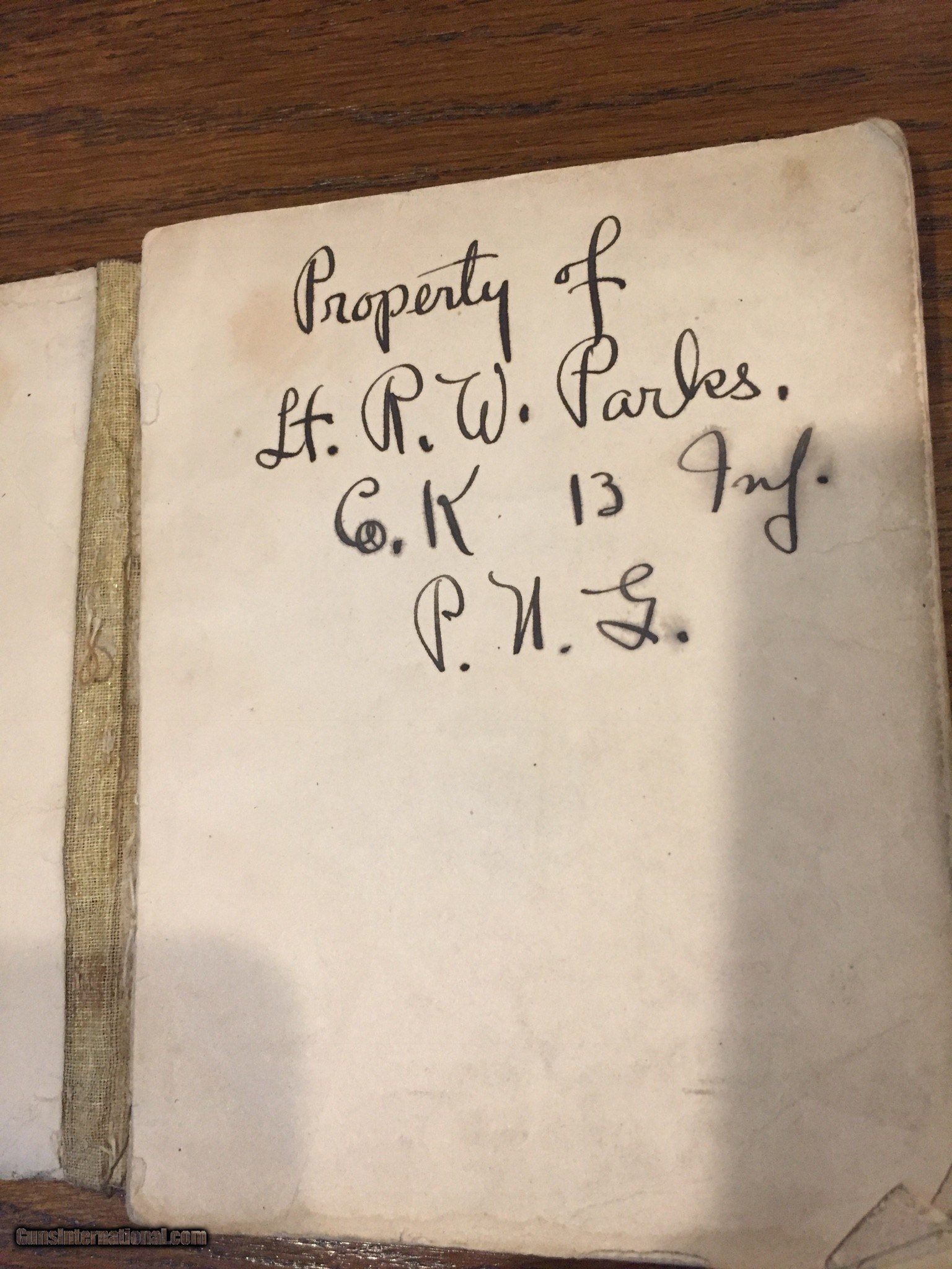 Description: A piece of Miltary history signed: Lt RW Parks Co K,13th Inf.PMG SOLD |