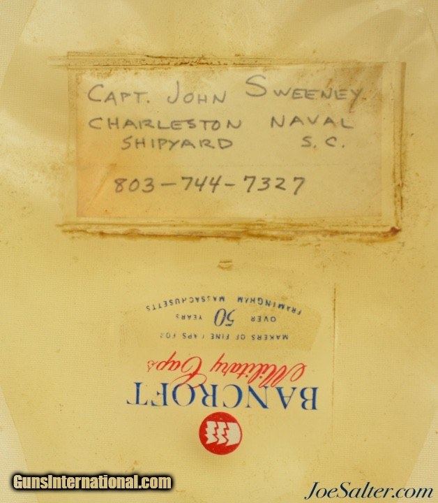 Description: This is a set of US Navy Captain Hats belonging to Cold War Submarine Veteran, John Henry Sweeney, III Captain USN Retired of Arlington born March 27, 1932 in Wilmington, died December 17, 2020 in Middletown, NY. The dress hat is in to very good to excellence condition and the other looks like the working hat and is in good condition. Captain Sweeney spent the end of his career working for DARPA, the Defense Advanced Research Projects Agency.; Price: $79.00 Contact Seller |