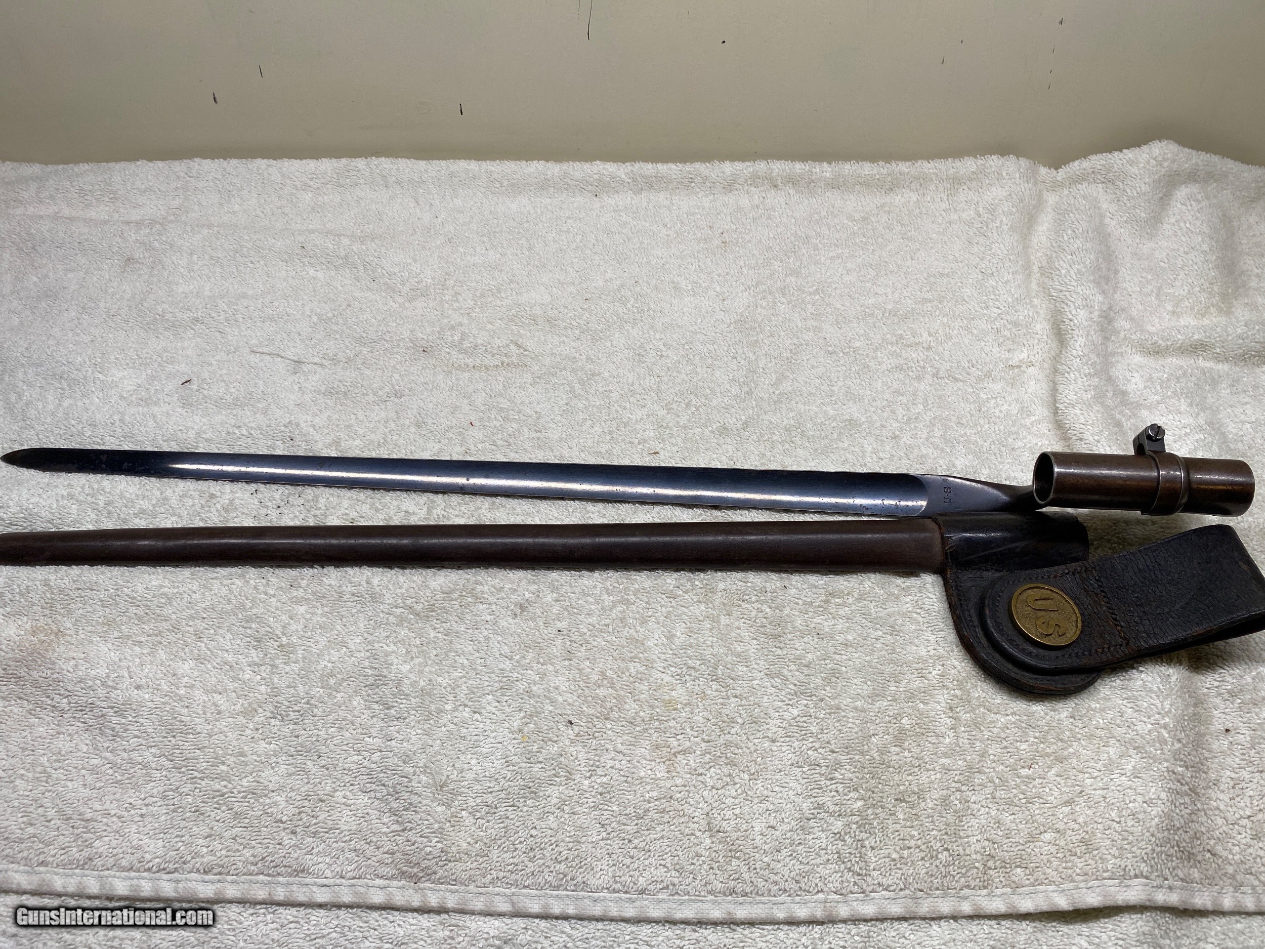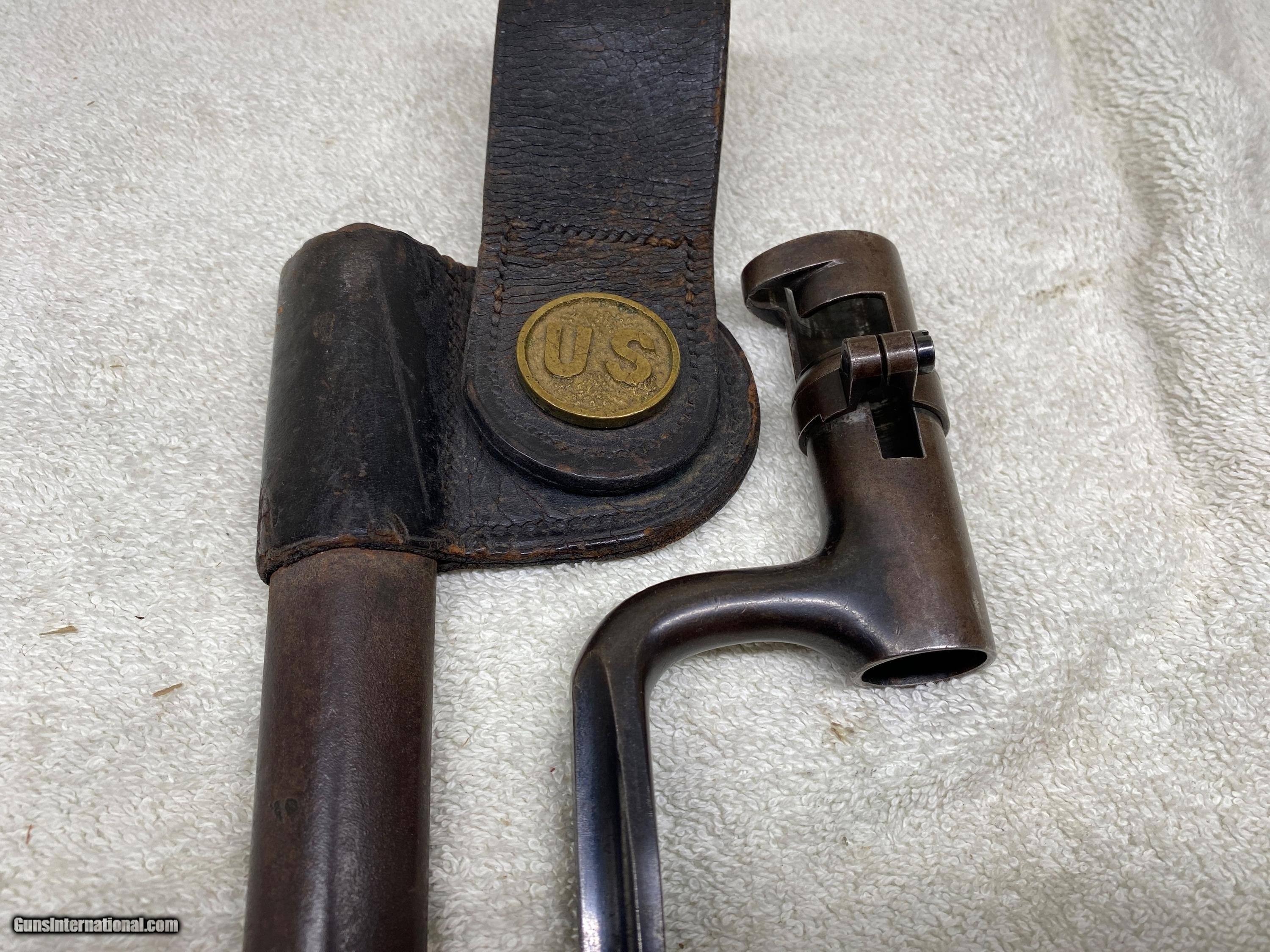 Description: SOLD Excellent condition socket bayonet for the Springfield trapdoor 45-70. Complete with 1870-80s scabbard. No rust or pitting, locking ring works perfectly. $20.00 shipping, Money order preferred, or check. SOLD Rifle Caliber: .45-70 Government |