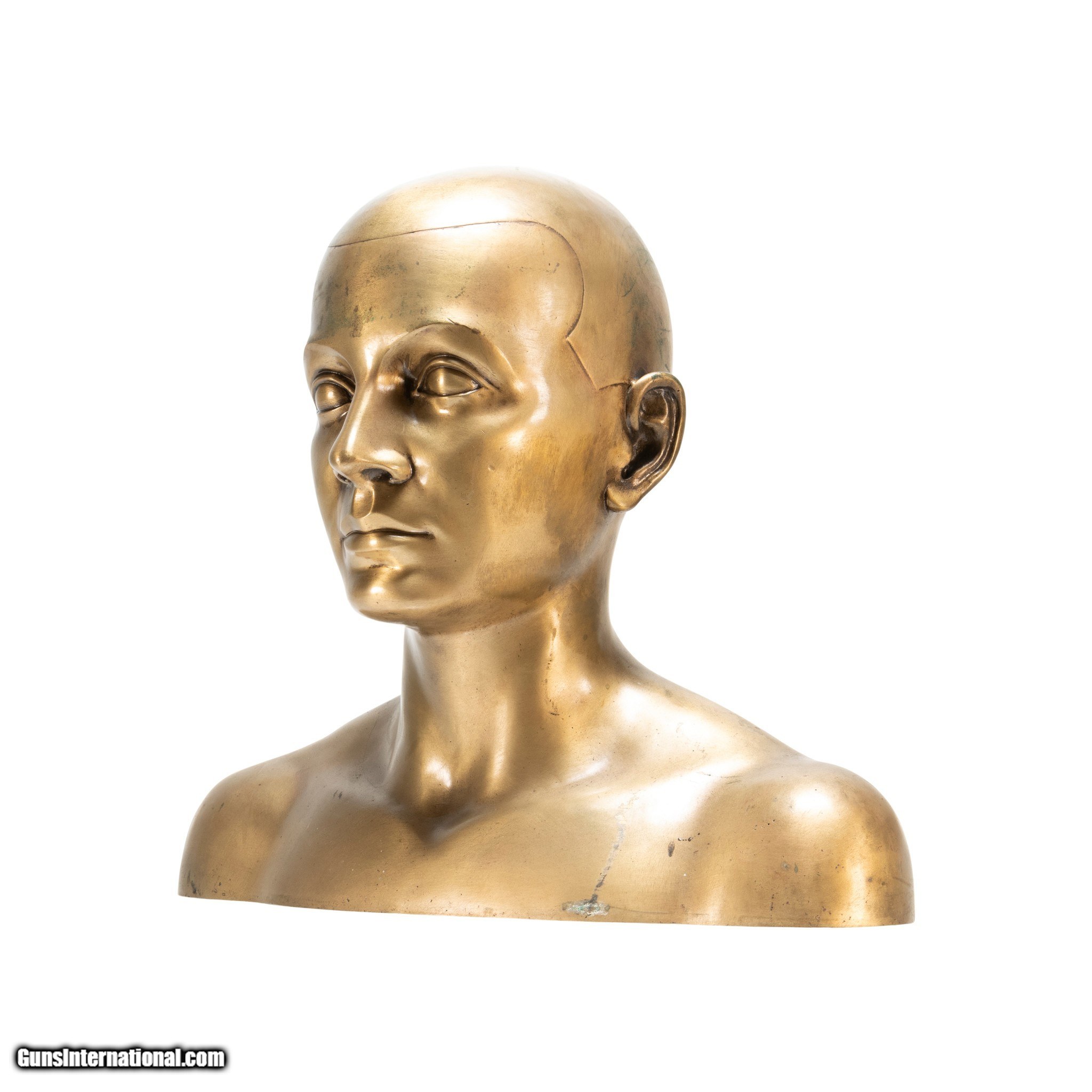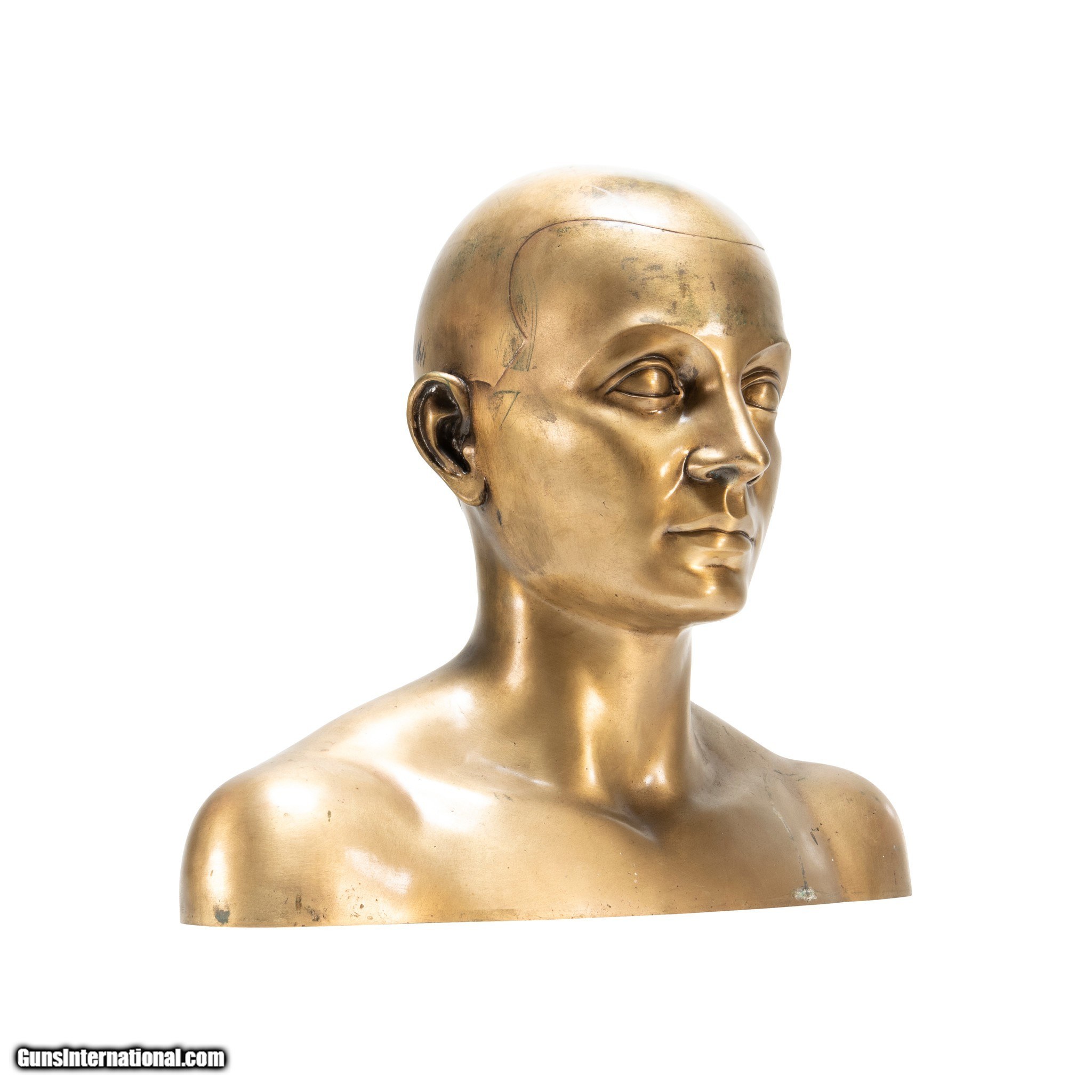 Description: Two Documented Anthropometric Analogous Mannequin Headforms for Army Helmet Testing in 1994. In the included October 17th, 1994 dated U.S. Army technical report titled "Development of Anthropometric Analogous Headforms" it states, "The overall goal of the CTI study is to design three manikin headforms ---small, midsized, and large -- for use in military ejection seat and crashworthiness testing, as well as retention and fit assessment, of helmet and head-supported devices." Head diameters measure approximately 21" and 22 1/2". Both made of brass, would work well for helmet display heads. Size: 21", 22 1/2" Family Owned & Operated Cisco’s Gallery deals in the rare, exceptional, and one-of-a-kind pieces that define the history of America and the Old West. Our pieces range from American Indian to Cowboy Western and include original items of everyday life, commerce, art, and warfare that tamed America’s frontier. Our 14,000 square foot gallery opened in 1996 in beautiful Coeur d’Alene, Idaho. Personal Service Cisco’s operates on old fashioned values – honesty and integrity, and all of our items are backed by our money back guarantee. We appreciate the opportunity to earn your business. Whether you desire assistance with a jewelry purchase, choosing a gift, identification, or even selling – we hope to be your trusted source SOLD |
