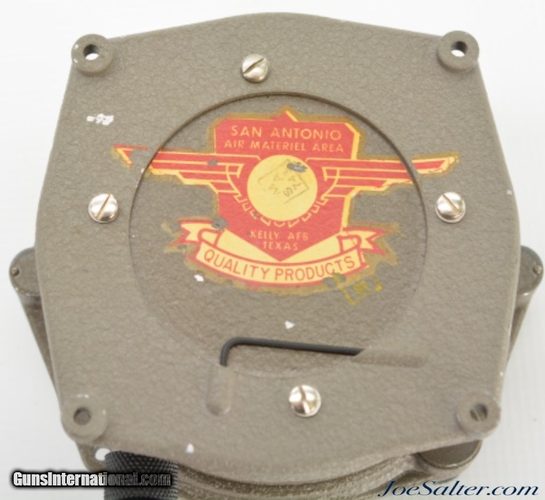 Description: Serial #KI 6793. This is a "BENDIX RADIO" marked radio compass in in full aircraft housing complete with a USN marked calibration tool. The housing has 97-98% of its original tan "crinkle" finish which has a few small spots of flaking along the edges. The back of the housing still has a 98% complete red and yellow Kelly AFB marked, San Antonio Air Materiel Area acceptance decal and the original Allen wrench. This is a neat piece of aviation memorabilia and is in excellent condition. Price: $75.00 Contact Seller |