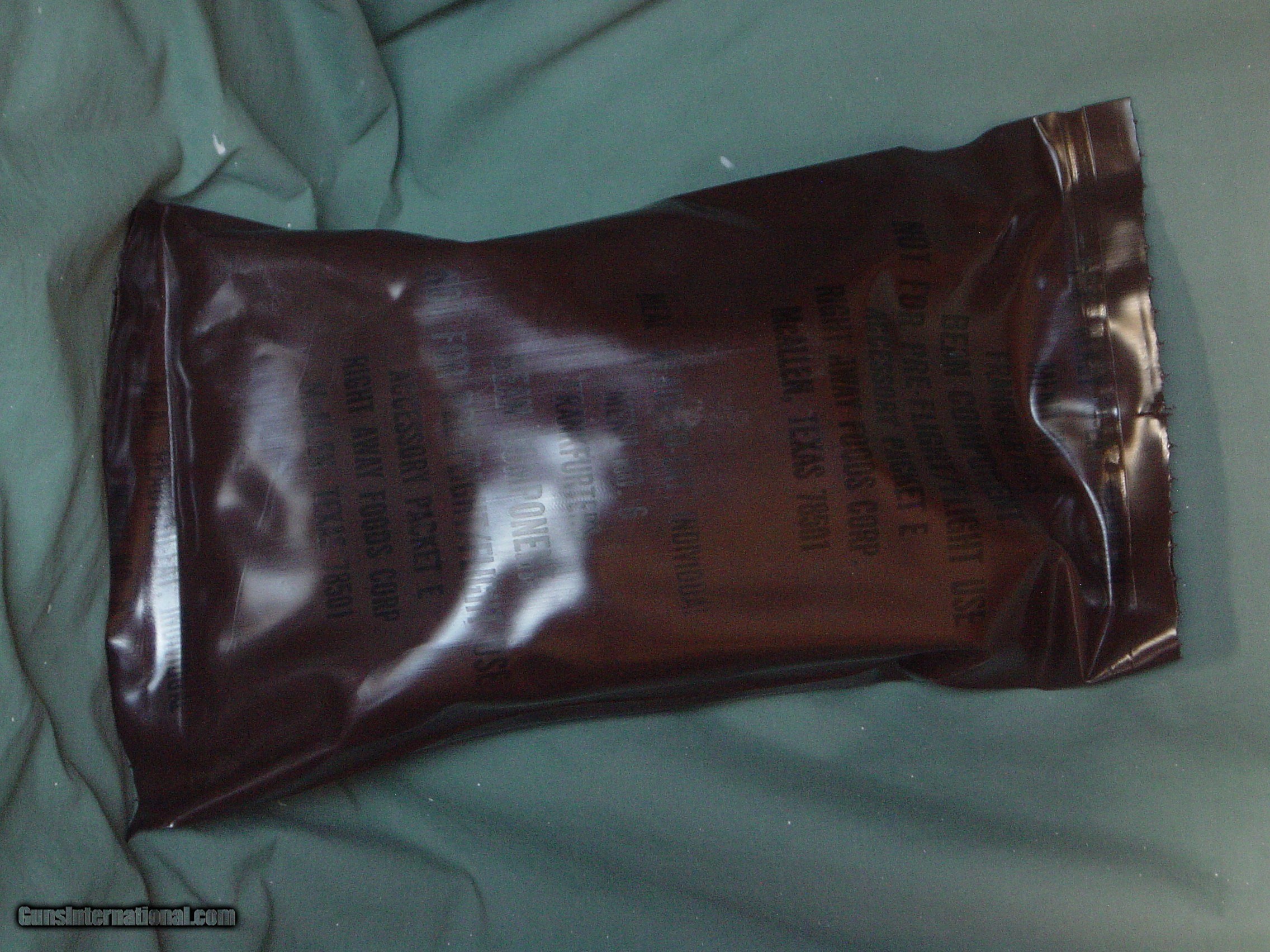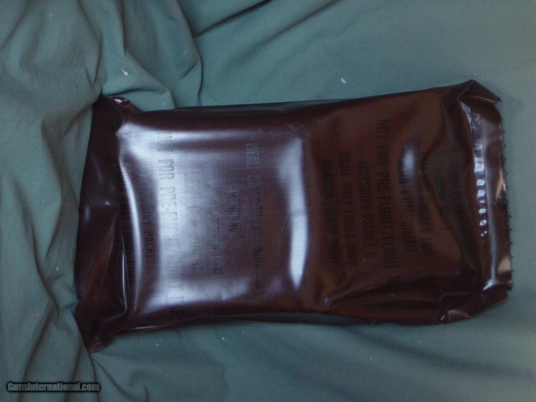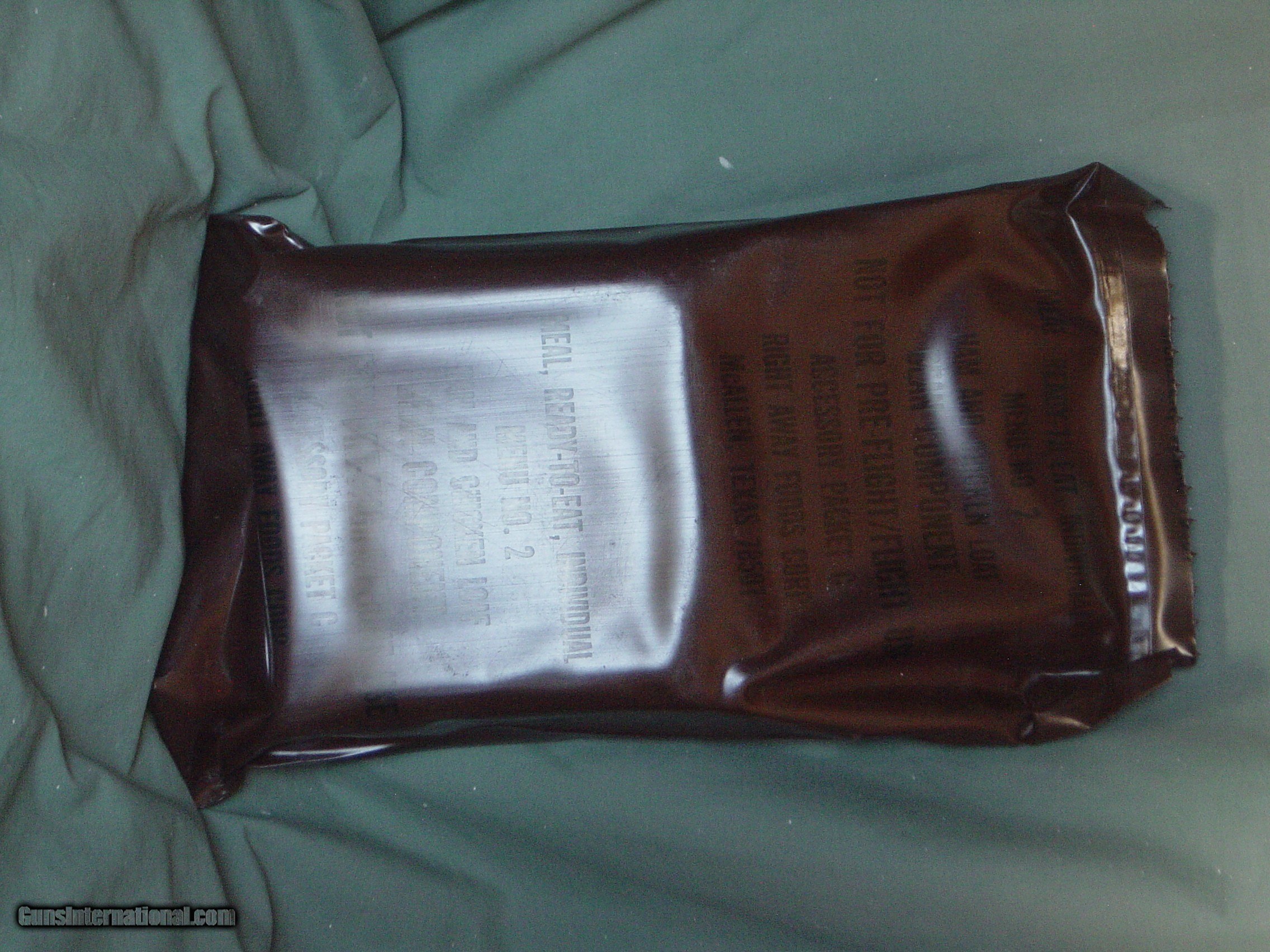 Description: This sale is for three (3) original Unopened MRE’s (Meal Ready to Eat) from the early to mid-1980’s, in very good condition. These have been stored in a dry and climate-controlled environment. They make a Great Military Display item. Please see pictures of actual item you will receive. Shipping is included in the price, USPS priority mail to the lower 48 states. MREs (Meals, Ready to Eat were first introduced for use in the US military in 1981. Since then, the original simple brown MRE bag has undergone two major and several minor updates. Link to the History of the MRE’s MRE Bag Design | MRE Info SOLD |