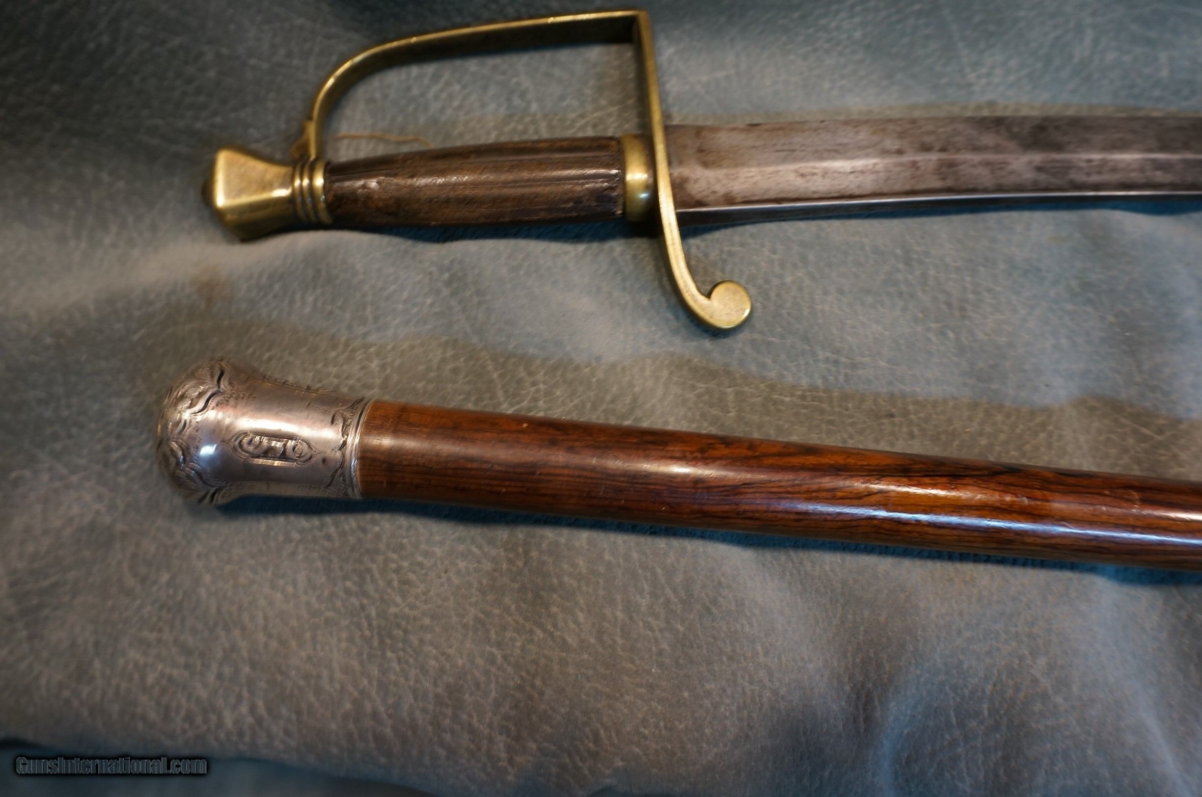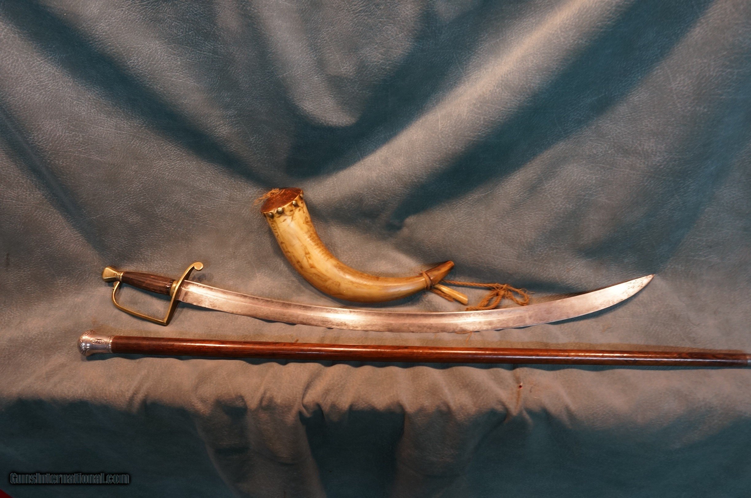 War of 1812 Veteran's Powder Horn, Sword and Walking Stick