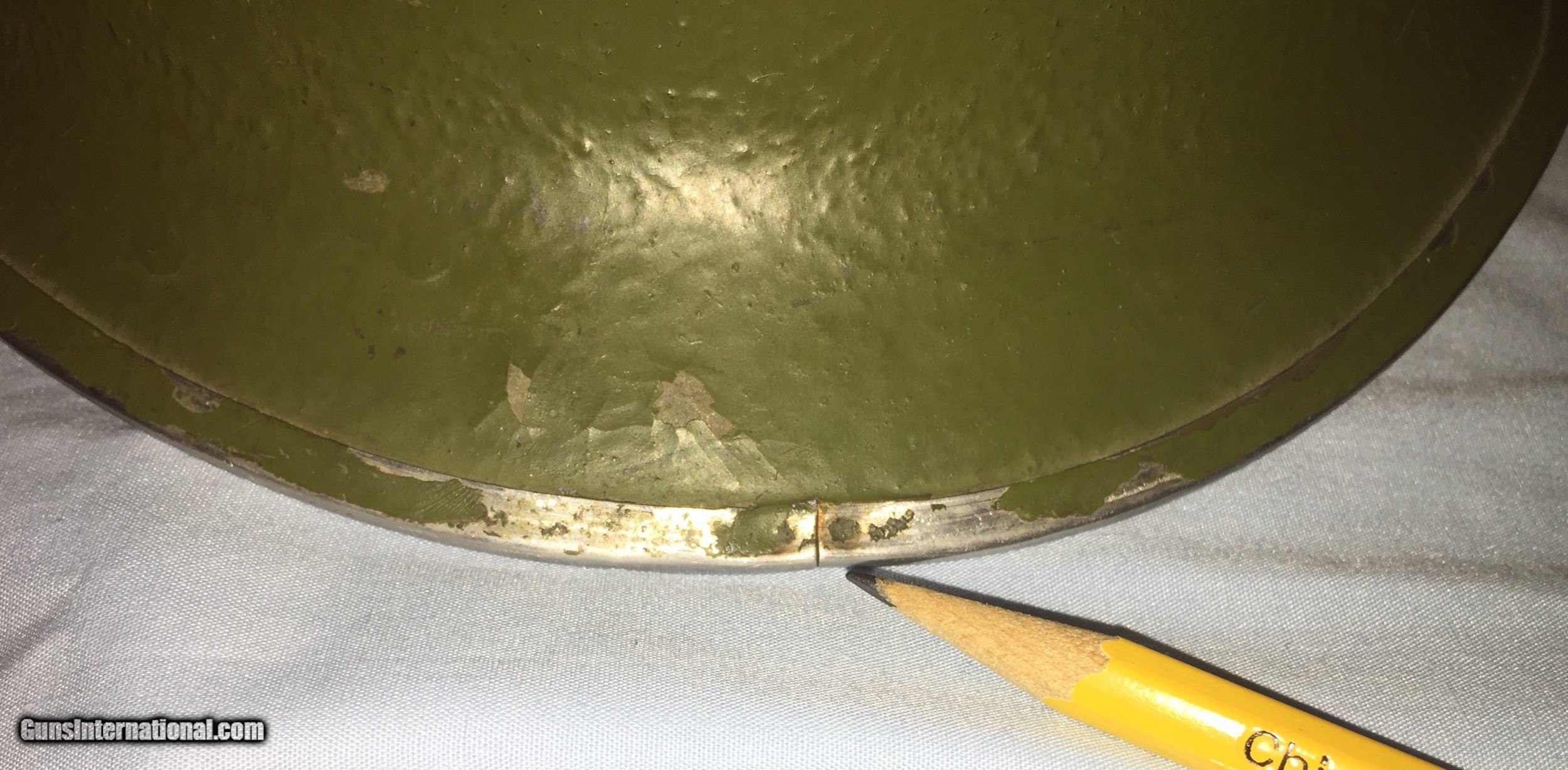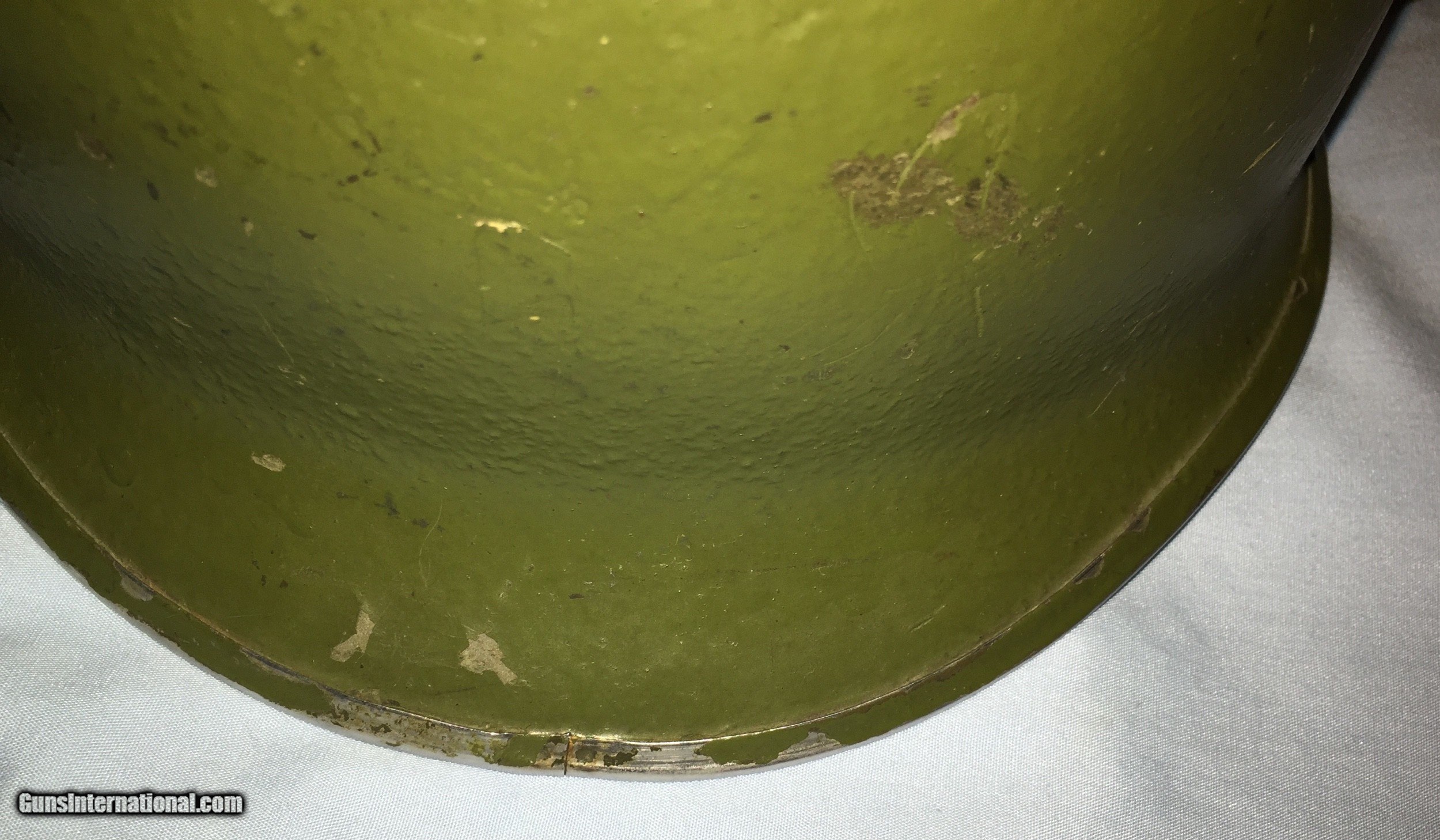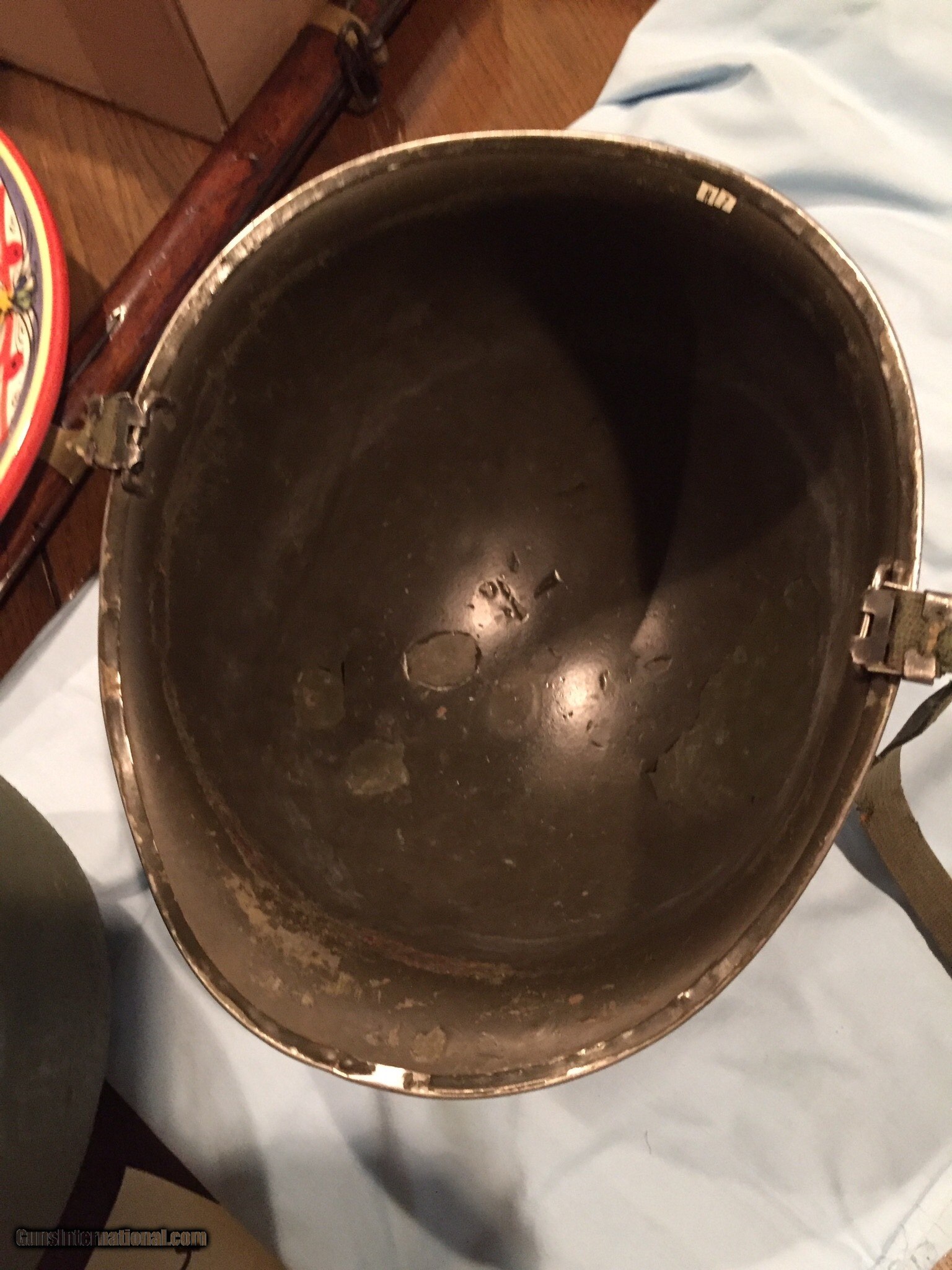 WWII American G.I. split bale steel helmet with liner w/soldigers name in it