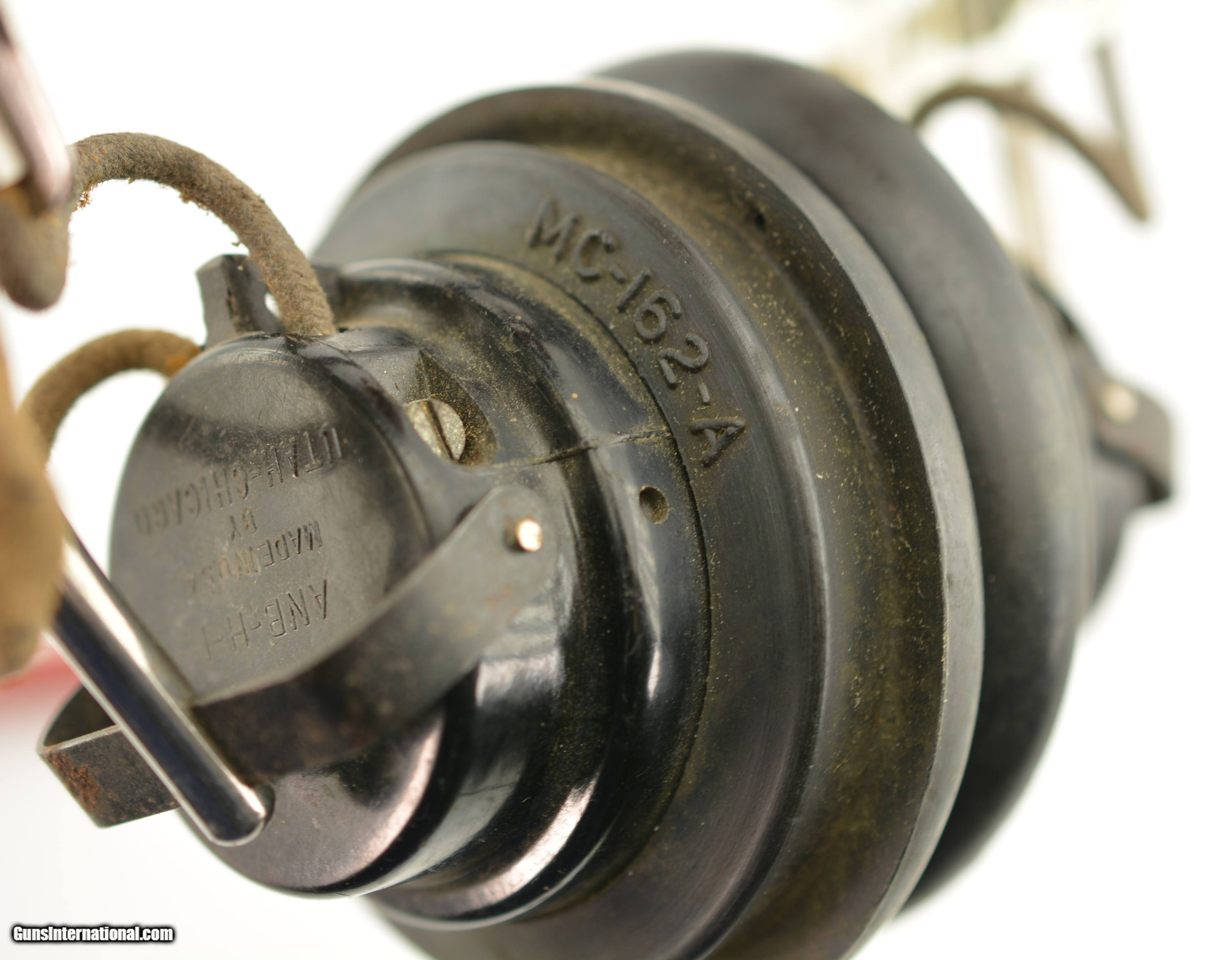 Description: This receiver headphone set is in very good condition with little signs of wear. The leather wrap that runs over the steel arms to the head set is in fine shape with the printing on them of 12 44. The steel loop themselves show a bit of surface corrosion. The ear covers MC-162 still have some spring in the material after all these years. I am not able to test this set but all wires seem firm and connected. SOLD |