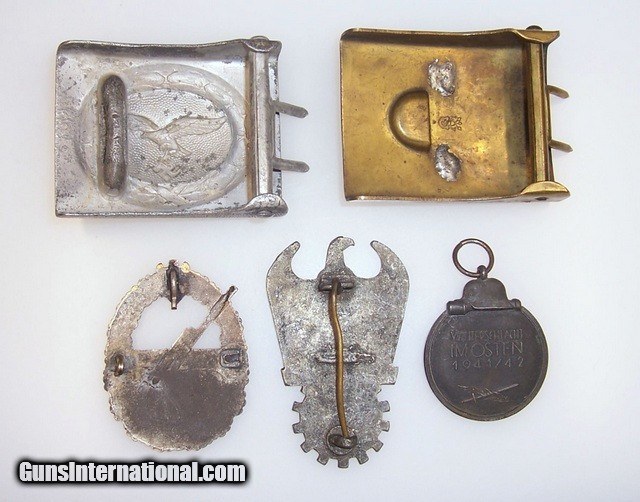 Description: 5 WWII German Nazi Belt Buckles Medals. I am selling these for an estate. I am not knowledable about WWII German items. Depend on your own knowledge & expertise. Ships only to lower 48 states. Shipping is FREE. No add on fees for credit cards . SOLD |