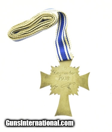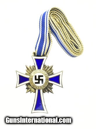Description: German WWII Silver Mother’s Cross with Ribbon Necklace. Very good condition. Shows very little wear and aging. SOLD |