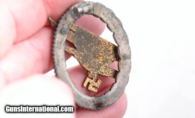 Description: WW2 GERMAN LUFTWAFFE FALLSCHIRMJAGER PARATROOPER BADGE MAKER STAMPED G.H. OSANG OF DRESDEN. All original in good condition with original finish and light patina. Retaining pin missing. Maker stamp on back of eagle. SOLD |