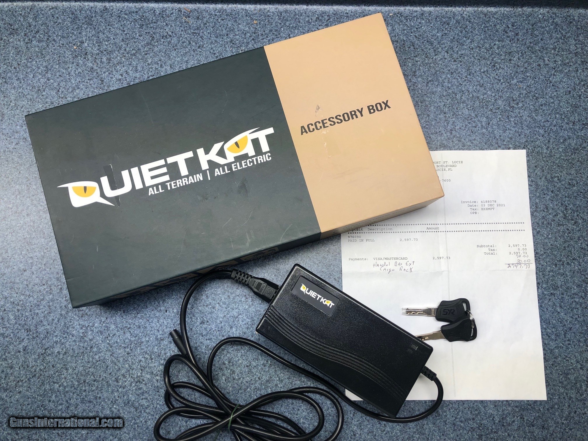 Description: SOLD $1799 ......QUIETKAT IS THE BIKE HUNTING TV HOST JIM SHOCKEY RIDES AND ENDORSES ON THE OUTDOOR CHANNEL. IT IS THE BEST OUT THERE. 4 MONTHS OLD PURCHASED E-BIKE DEC 2021 FOR $2750 FROM BASS PRO HERE IN FLORIDA WITH 1 YEAR WARRENTY. OPTIONS ADDED REAR CARRIER RACK AND 3" HANDLE BAR RISER ( EASIER ON BACK AND ALLOWS TALLER RIDER ) SENIOR PURCHASED FOR USE WITHIN +55 PLUS COMMUNITY THEN FELT UNCOMFORTABLE RIDING IT. NEVER DUMPED NO DINGS NO SCRATCHES. THIS IS IN PERFECT SHAPE WAITING TO TAKE YOU HUNTING INTO WOODS "QUIETLY" DONT SPOOK ANIMALS. CHARGER TOOLS MANUAL. FOR DETAILS GOOGLE QUIETKAT RANGER 5.0. I AM 65 220 6FT 2 IN AND FITS ME WELL AND ADMIT ITS FUN TO RIDE. 21 MPH. BIKES APPROX WEIGHT 65LBS. I WILL TAKE BIKE TO THE RETAIL BIKE SHOP FOR DROP OFF AND HAVE THEM TO PACKAGE AND SHIP YOU WILL BE RESPONSIBLE FOR THAT PART. SOLD |