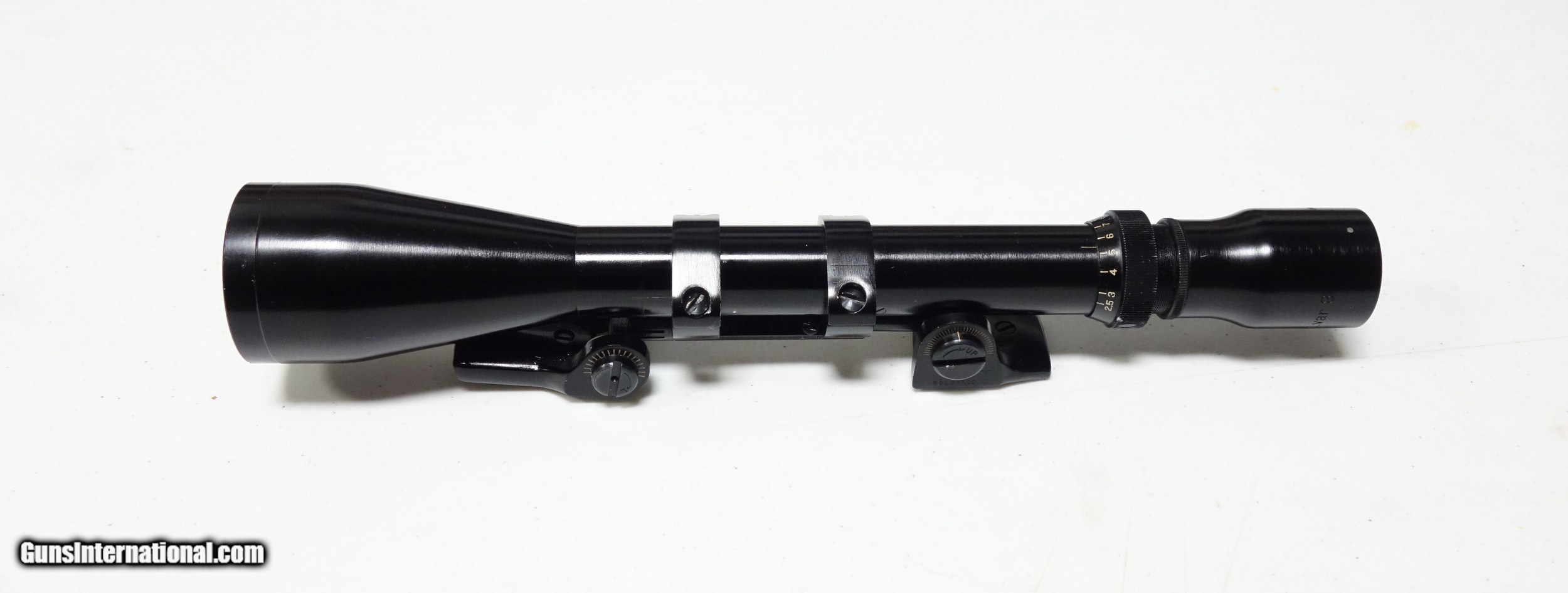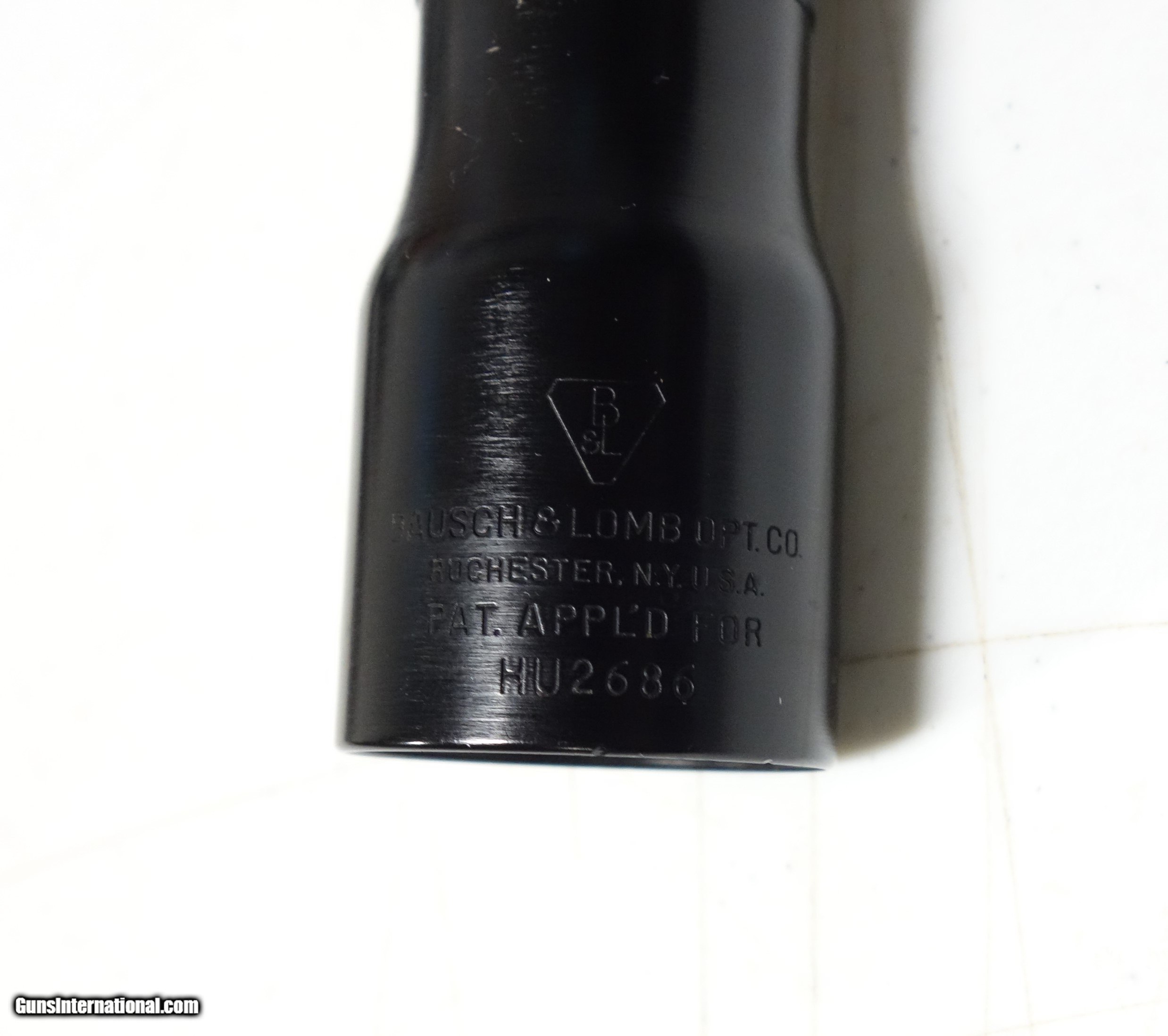 Description: Excellent Bausch & Lomb Balvar 8 scope with B&L plunger mounts that will fit a standard post war Pre 64 Winchester Model 70 receiver. Fine tapered reticle. Optics are bright with no internal debris. Power ring moves freely and functions properly. These Rochester N.Y. made B&L products were among the best in the world and on a par with the top European makers of their time. S/N is HU2686 believed to be made in 1959. These scopes have no turrets for windage or elevation, all adjustments are made on the mounts themselves, so you could theoretically have an unlimited number of rifles with mounts and only one scope which positively plunges in and out of the mounts with no loss of zero despite caliber or configuration. There are a few light abrasions and the ring screws are slightly tool marked, but overall a very nice package. SOLD |