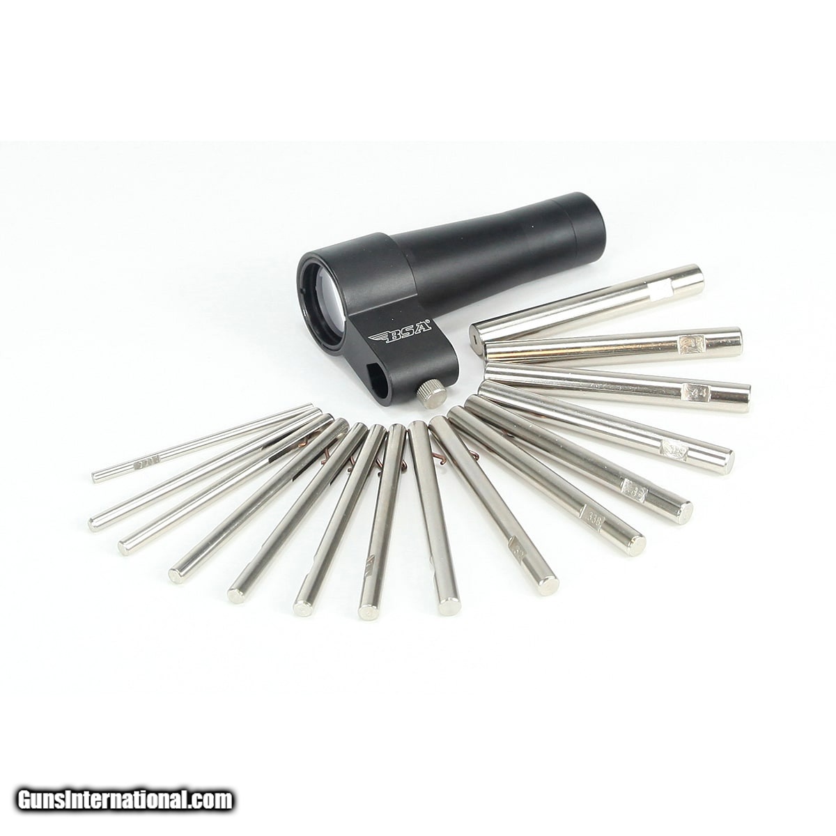 Description: Manufacturer: BSA Optics Model: Bore Sight Kit Sku: BSA30 Includes: .177 Arbor, .22 Arbor, 6mm Arbor, .25 Arbor, 6.5 mm Arbor, .27 Arbor, 7 mm Arbor, 30 Arbor, .32 Arbor, .338 Arbor, .35 Arbor, .375 Arbor, .44 Arbor, .45 Arbor, .50 Arbor. All packages in heavy duty hard case. The BS30 Multi Caliber Collimator (Boresighter) with Arbors is designed for use with pistol and rifle calibers, and helps you get on paper easily without wasting ammo or range time. All items are factory new in box unless otherwise stated. Based on the information available to us, the above specifications describe this item to the best of our knowledge. For further information, please contact or visit the manufacturer's . SOLD |