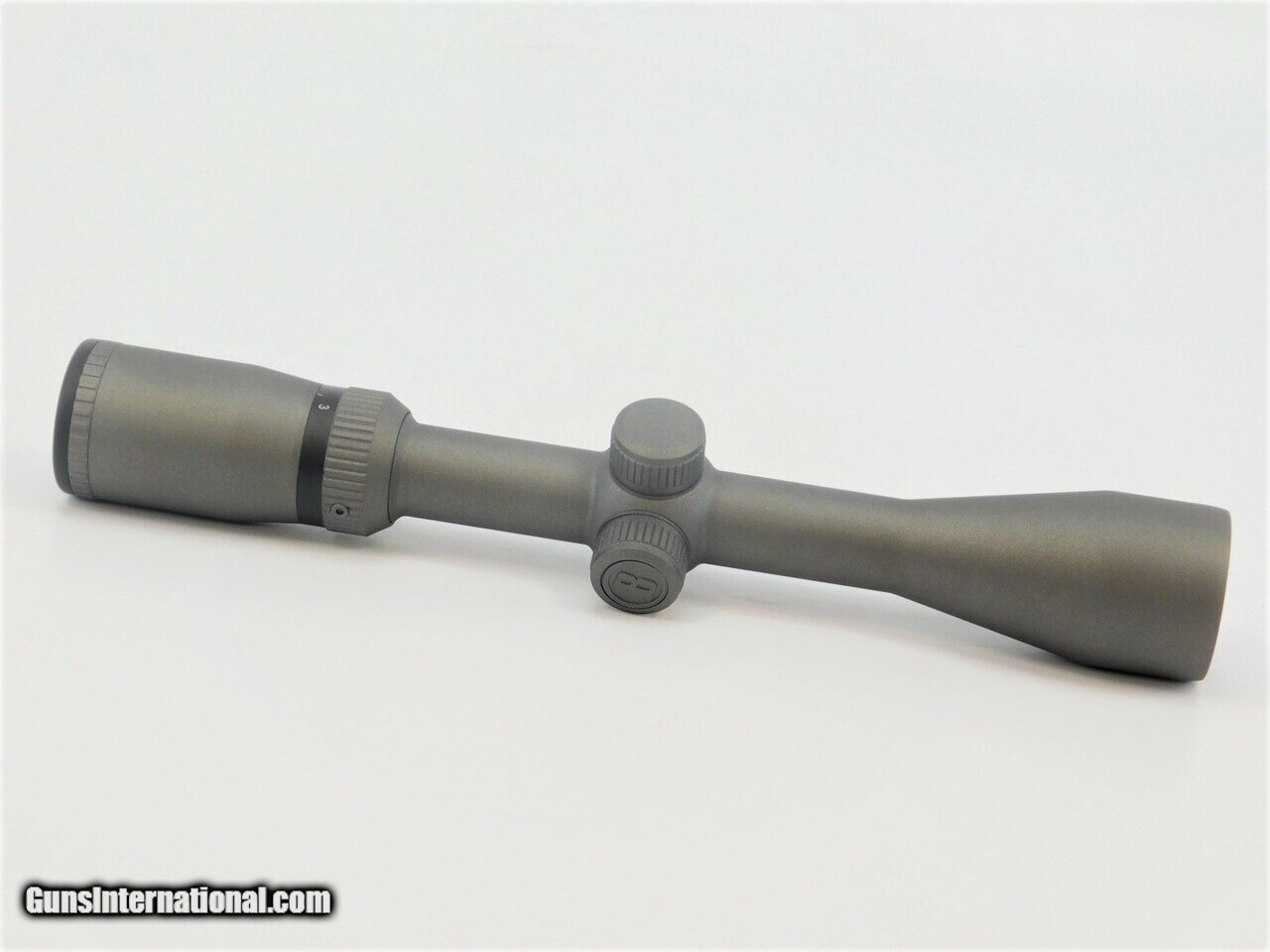 Description: Manufacturer: Bushnell Model: Trophy XLT 3-9x40mm Finish: Tungsten Cerakote SKU: RT3940BS11 TU Magnification: 3-9x Objective: 40mm Tube Diameter: 1" Reticle: DOA Quick Ballistic SFP Length: 12.25" This scope features a custom Cerakote finish that has been applied by US CERAKOTE, our local trained and certified Cerakote technicians. Cerakote is a ceramic and polymer based proprietary formulation that offers industry leading durability, hardness, scratch resistance, corrosion resistance, flexibility, heat and chemical resistance. For additional information on US CERAKOTE click on their name above. Excellent low-light performance and resolution with Rainguard HD coating that repels water on the lens.