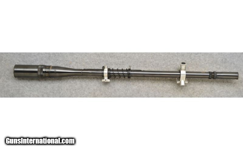 Description: Very good condition overall with original box. 1 1/4" Objective Bell, 25 inches long with 3/4 inch tube. SOLD Metal Condition: Very Good Weight: 2 lbs. 4 ozs. Sights: 1 1/4" Obj. 12x Target Scope, 3/4" Tube with Cross Hair Reticule, Micrometer Adjustment POSA Mounts Item Location: Hamburg, PA |