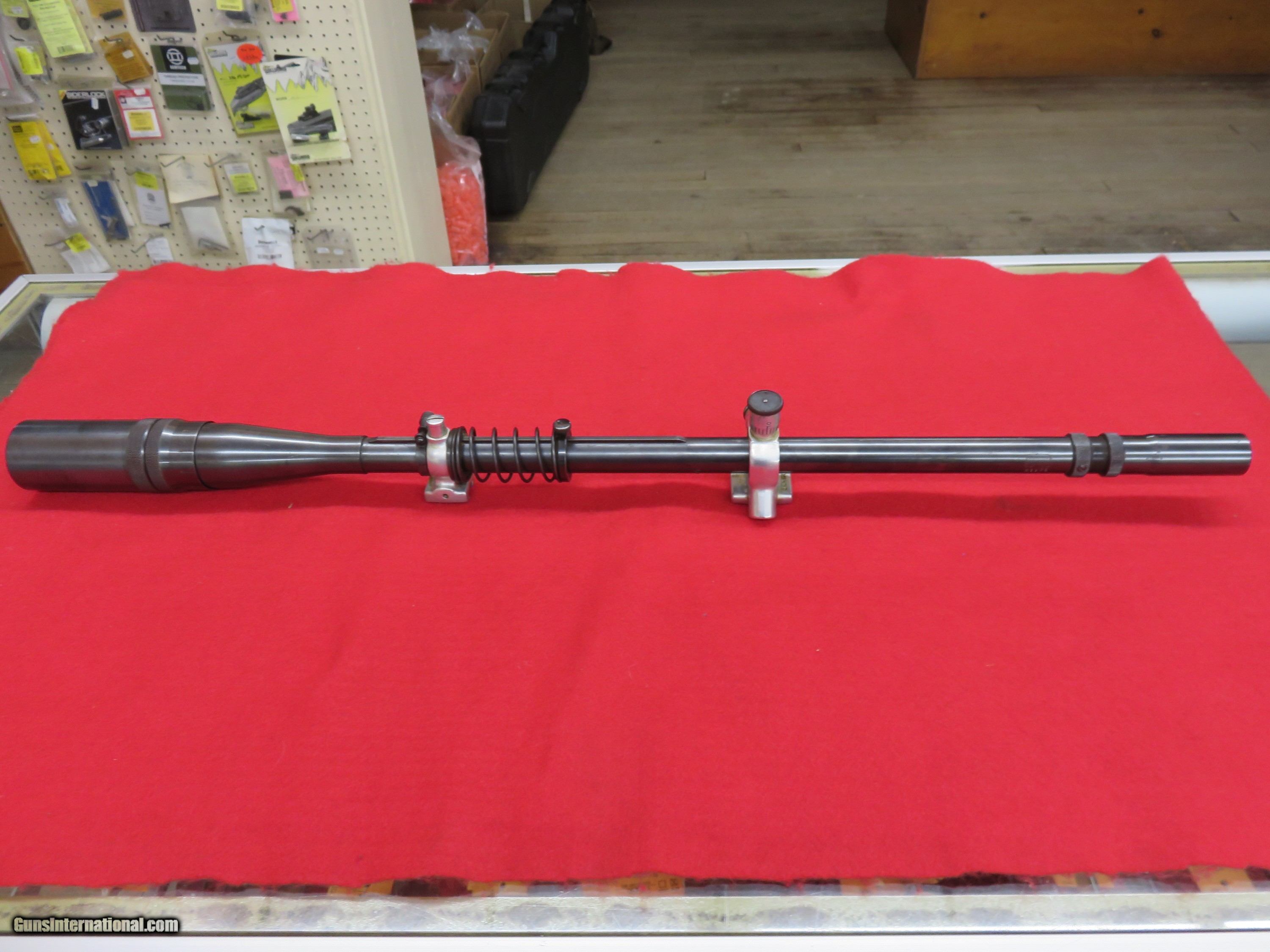 Description: J. Unertl Scope, 10X Target Scope, 25" over all length, 7/8" tube, fine crosshair, adjustable objective, overall it has very light, handling wear, no caps, $949.00 + $50.00 shipping SOLD |