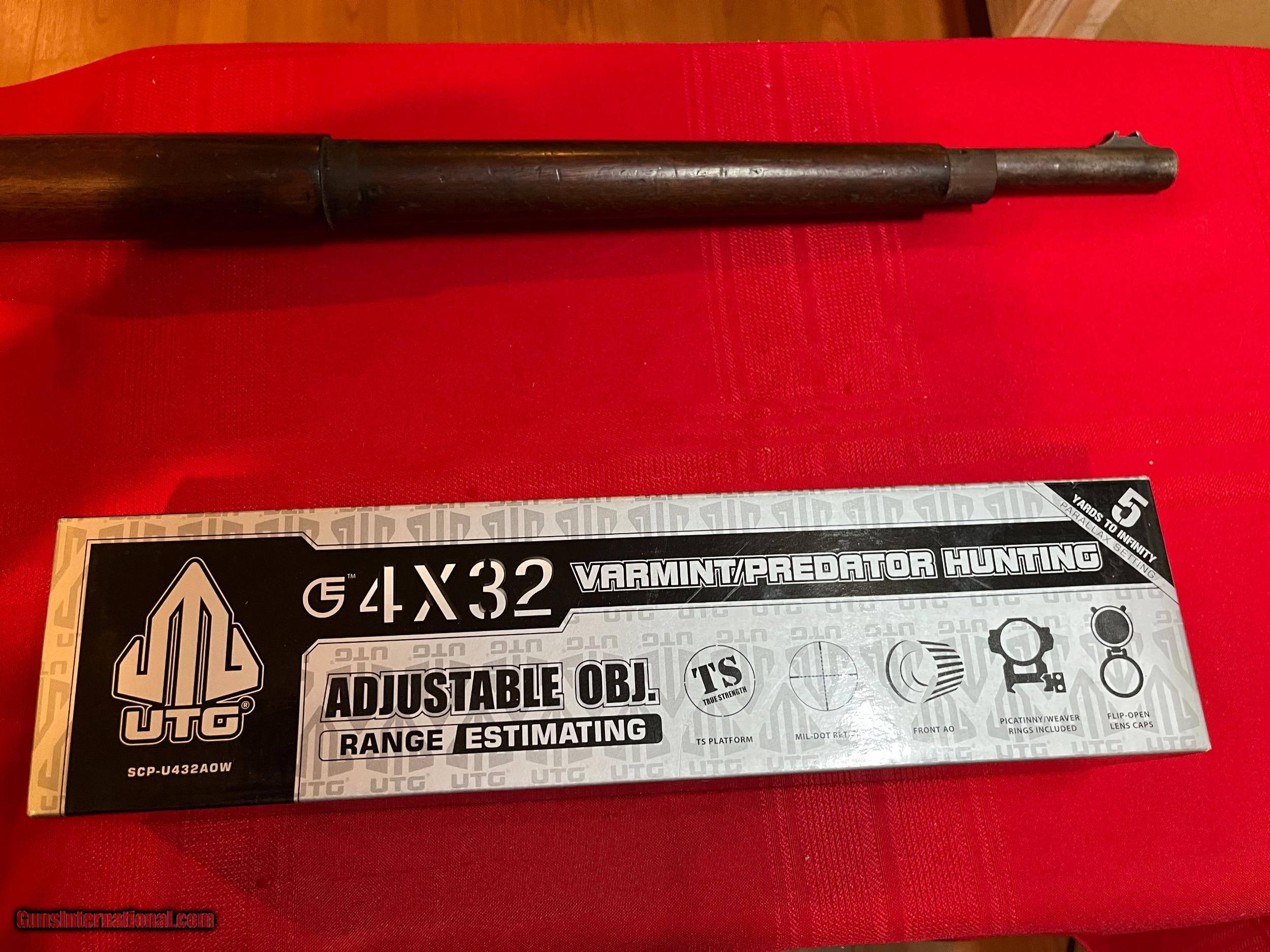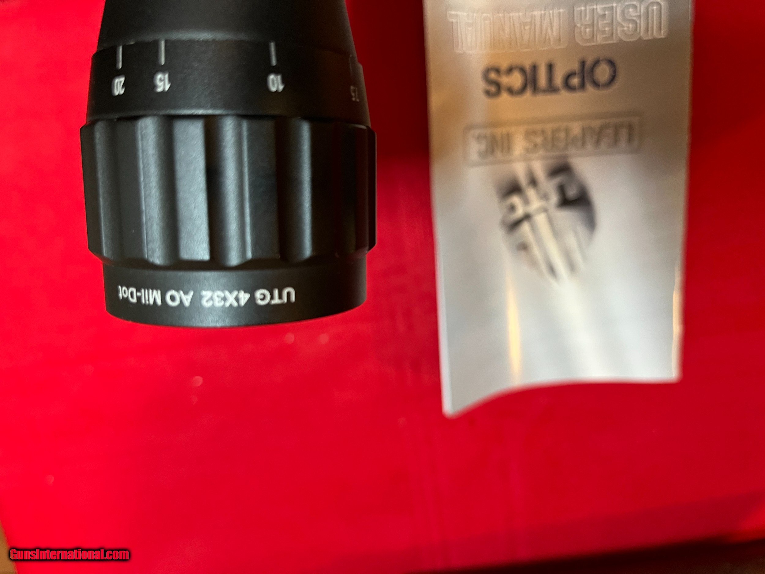 Description: NIB Leapers 4X Mil Dot AO Range finding scope. In box with literature. SOLD |