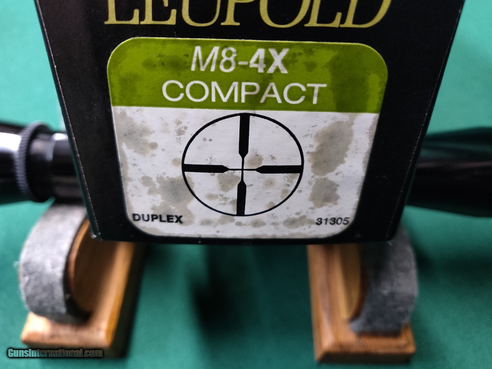 Leupold M8-4X Compact riflescope with duplex reticle in original box.