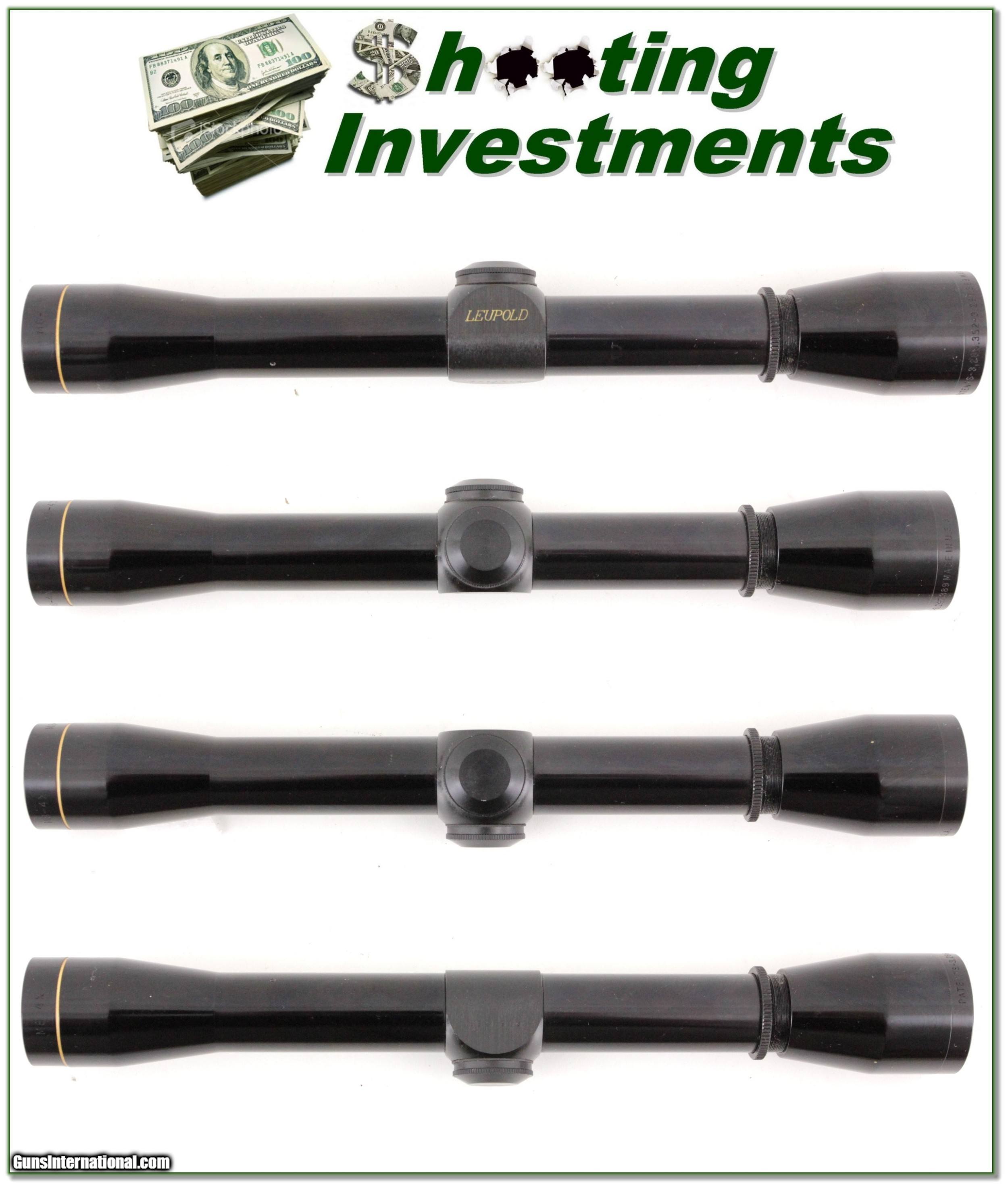 Description: This is an excellent Leupold 4X full size rifle scope. It is a harder to gloss scope with no marks I see. The optics are crystal clear with duplex cross hairs. This one is a 28mm scope and with the Leupold forever warrantee you can’t go wrong here. Shipping is $11.95. Please email me with any questions or larger pictures. (Consign your quality firearms with Shooting Investments for only 12%! Let me know if you have any you would like to sell!) 19-0712s Payment: Payment is by Money Order, Cashiers Check or Personal Check. I can now also accept Credit Cards (MasterCard, Visa, Discover & American Express) with a 3% convenience fee. PayPal can be used for some items but never for firearms. Shipping: The shipping charge will be listed in each description. It is $39 for most firearms. Some heavy guns or those insured for over $2000 will be higher. Shipments to Alaska and Hawaii are higher because air shipment is required. Most firearms are shipped on Tuesday and Thursday and usually in 5 days of receipt of payment. We package all shipments carefully and insure them. Optics are shipped Priority Mail and most other non-firearm shipments are shipped First Class. Returns: Our return policy is simple. If for any reason you are not pleased with your purchase, you may return your item for a full refund of purchase price. Ammunition cannot be returned. It is important to us that you are happy. Guns cannot be fired or dissembled before returning them and they must be returned in the same condition as received. Notification of a return must occur with-in 3 days of receipt at your dealer. Shipping, convenience and dealer fees are not refundable and are the responsibility of the buyer. Lay-a-way: If needed, we offer a 60 day lay-a-way option on most firearms. It is 1/3 now, 1/3 in 30 days and 1/3 in 60 days. Lay-a-way firearm sales are final and if not completed the first payment cannot be returned. Consigning your firearms with Shooting Investments: We will help you get top dollar for your firearms. While most local guns shops charge 20% or more, our fee is only 12% with a minimum of $75. At your local gun shop it might take months to sell. Selling on-line provides instant access to thousands of interested buyers. You won’t find any other on-line dealer willing to sell your firearms for only 12% or listing every gun on 3 separate s. Selling through an House typically costs the seller 15% and the buyer an addition 15% (so 30%) and you have to wait several months to sell and longer to receive funds. If properly priced, we will sell your firearms in a few weeks. Send us an email or give us a call and we’ll explain how easy it is for you to get top dollar. Trading: Trading for use is really just buying your gun to re-sell. If you have a gun you want to trade, please email a picture and we will let you know what we can give or it. You will always get more if we sell it for you on consignment. Help for California Buyers: We are happy to ship to California. It is the buyer’s responsibility to make sure any item you buy is legal in your state. We are also happy to help with your purchase of a firearm from someone other than us. If you see a gun you would like to buy but the seller can’t or won’t ship to California they can ship to use and we’ll then ship it to your California dealer. The cost for this service is only $30 + shipping. Let us know if we can help! SOLD |